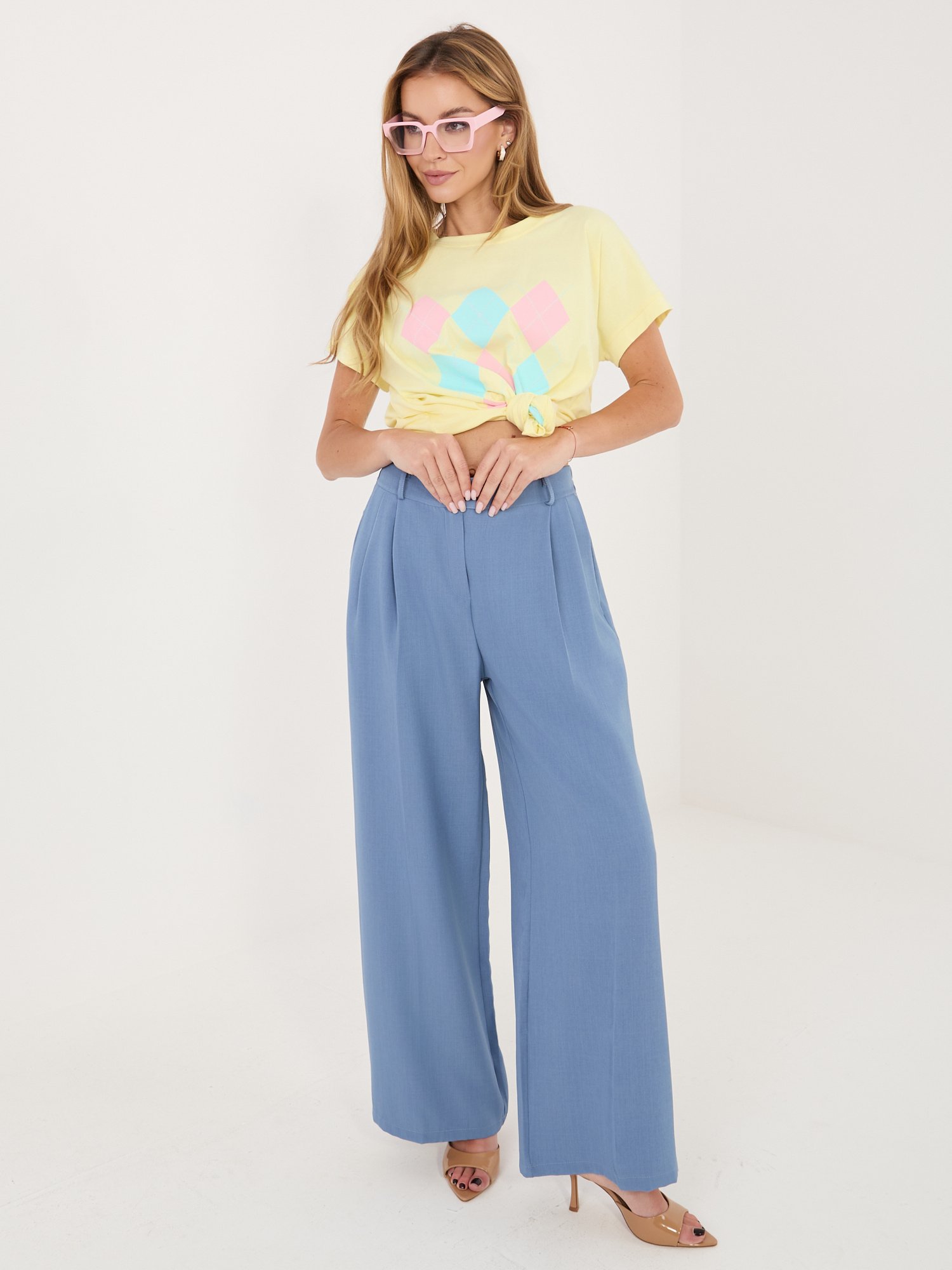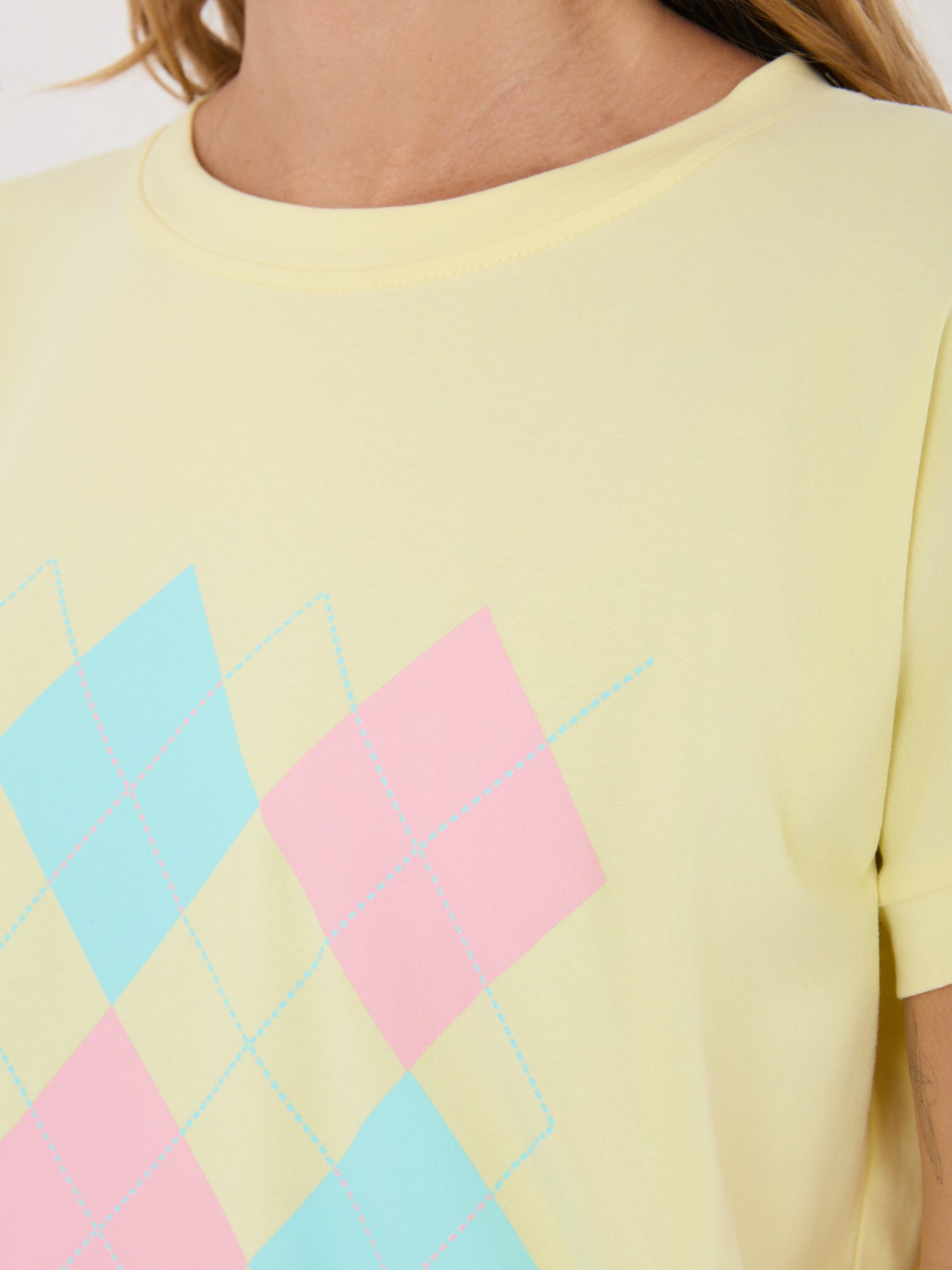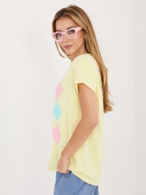 Minimalistiniai marškinėliai su klasikiniu rombų raštu “SELEN” šviesi geltona