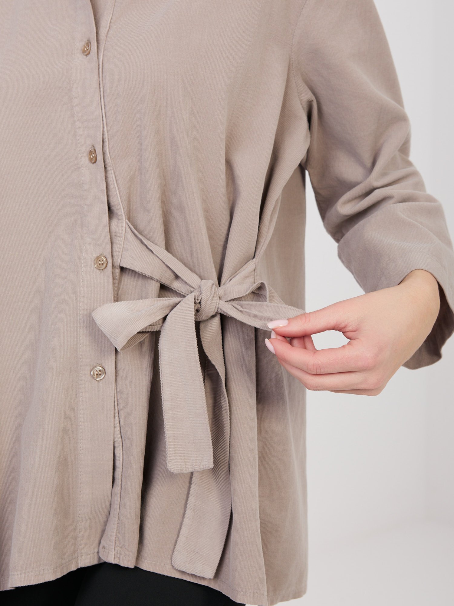 Asimetriški marškiniai su dekoratyviniu surišimu “LEILA” tamsi smėlio