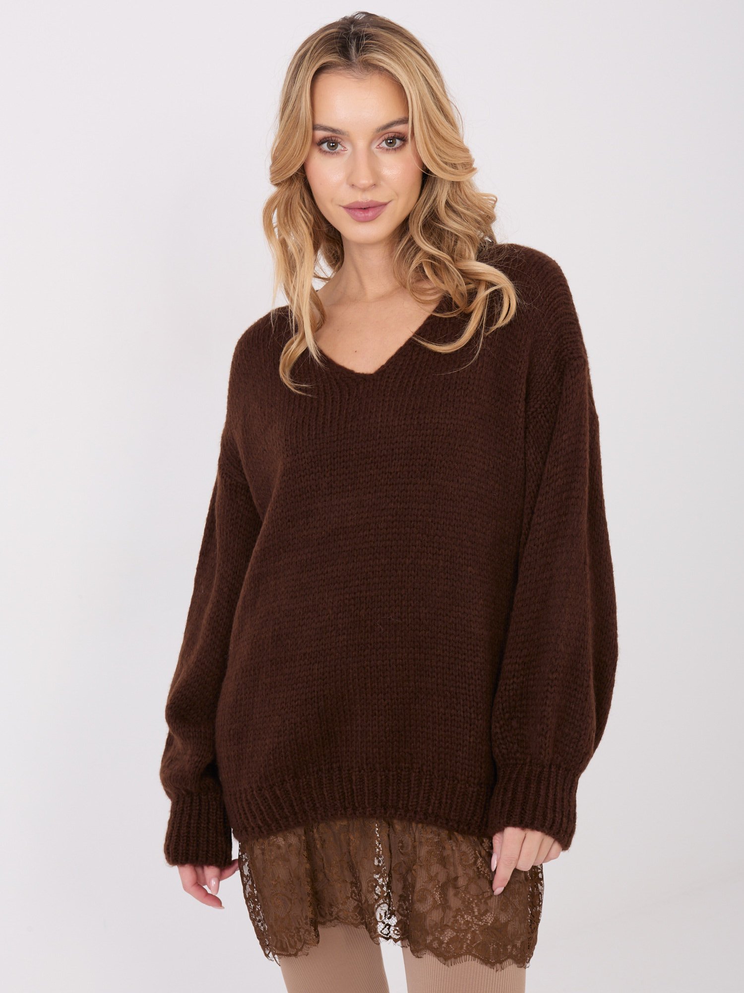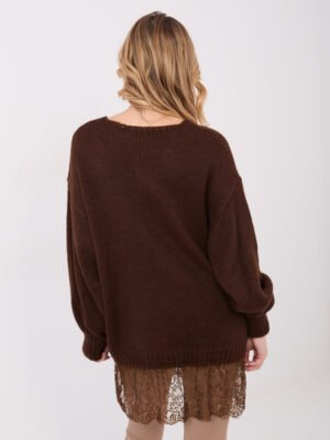 Mohero siūlo ilgas megztinis su gipiūro apačia “ASTRID” tamsi ruda
