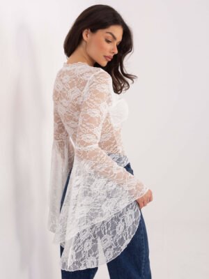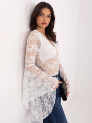 Nėrinių palaidinė su platėjančiomis rankovėmis “URSINA” balta