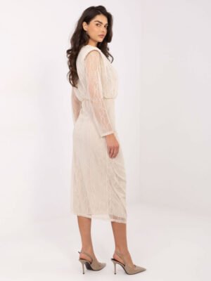 Nėrinių suknelė su permatomomis rankovėmis ir skeltuku “TAYA” sviesi smėlio