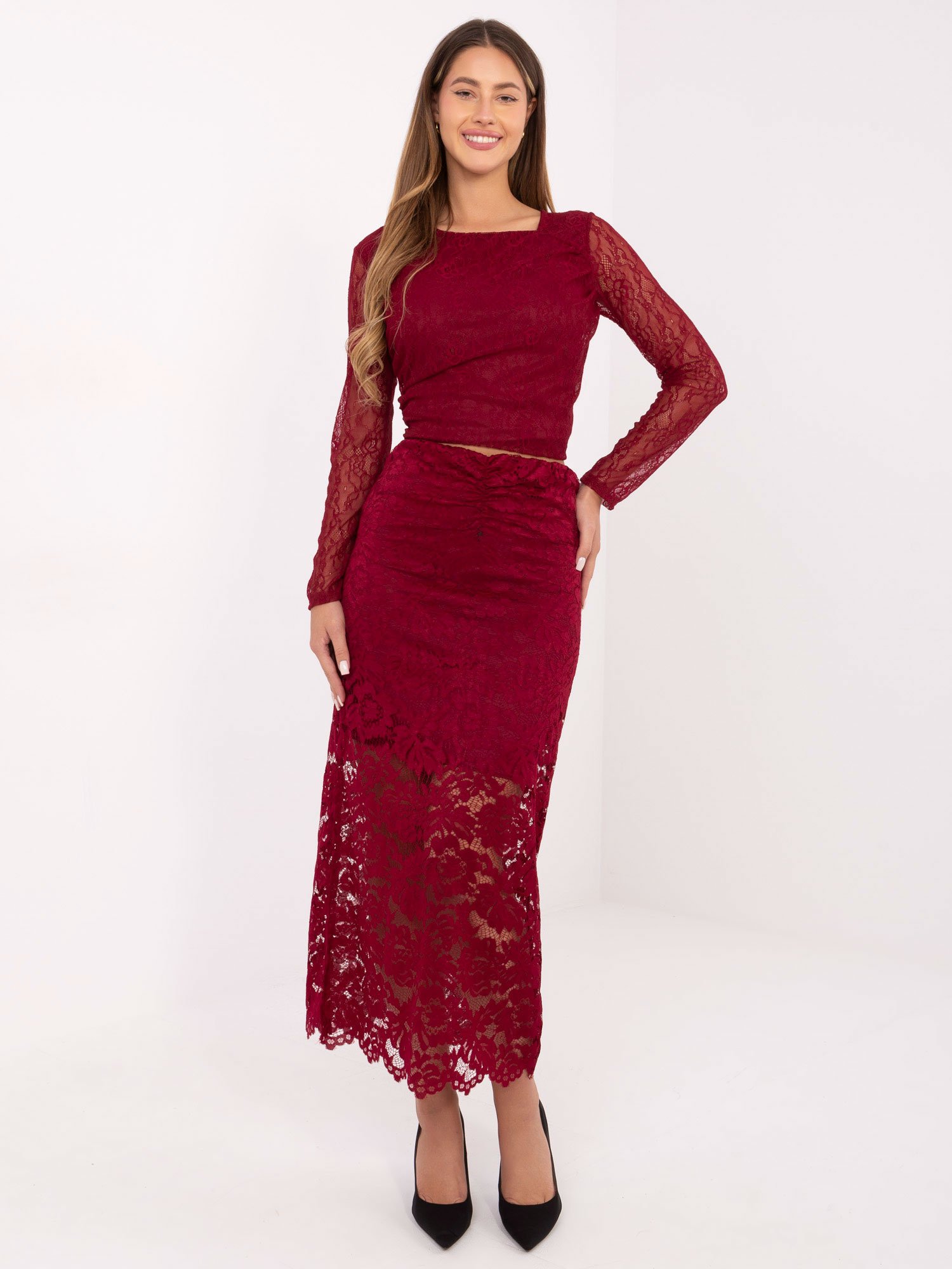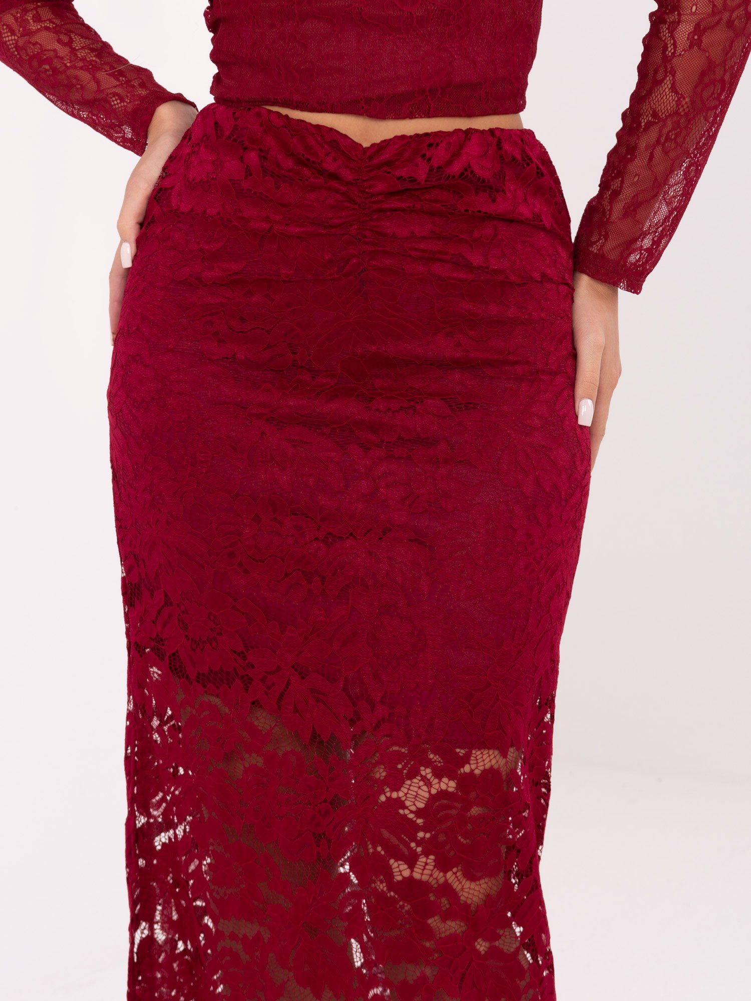 Modelis dėvi ONE SIZE dydžio sijoną.