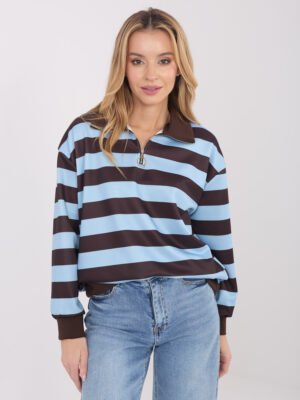 Oversize džemperis plačiomis juostomis su trumpu užtrauktuku “REMI” šviesi mėlyna