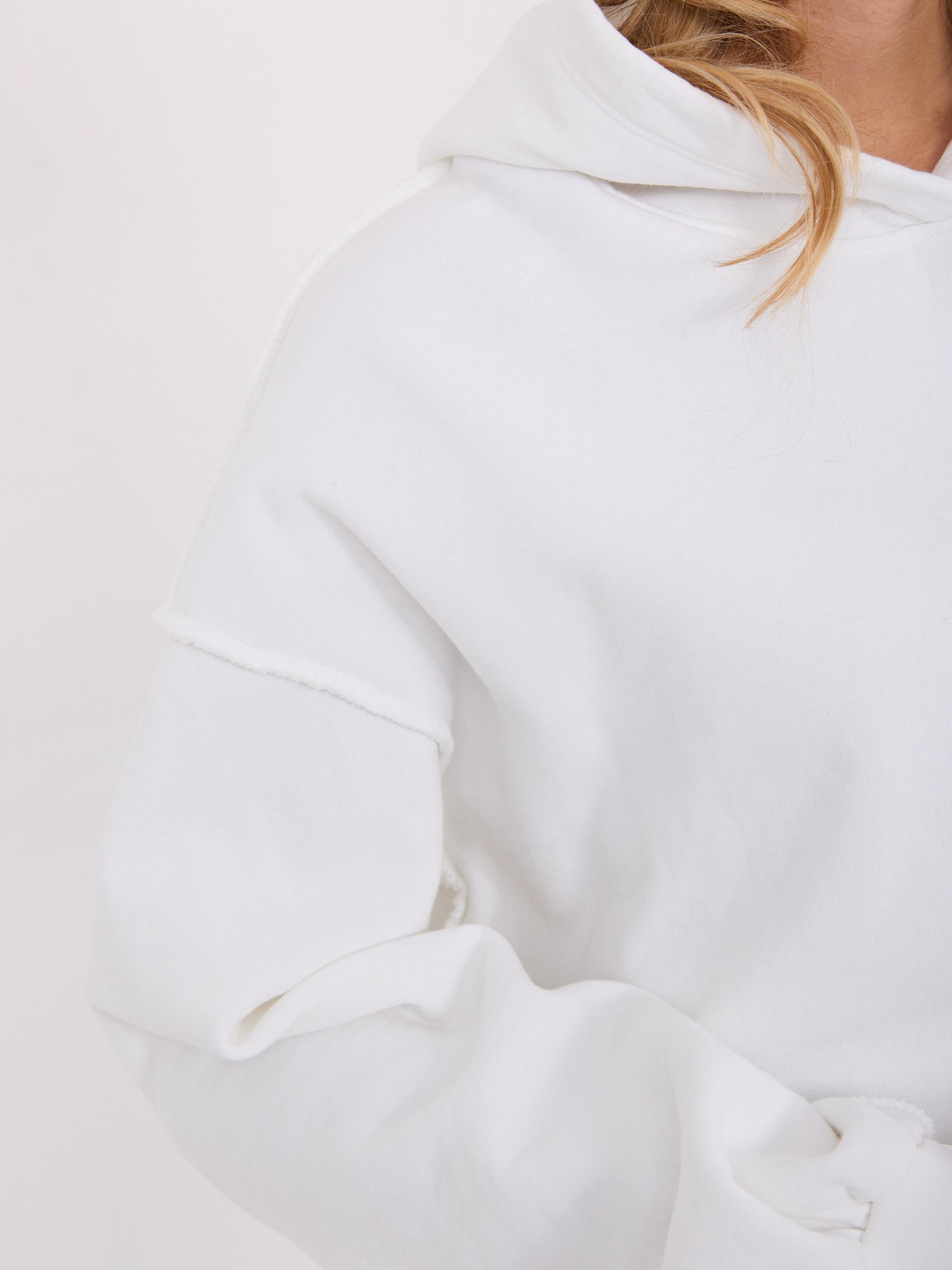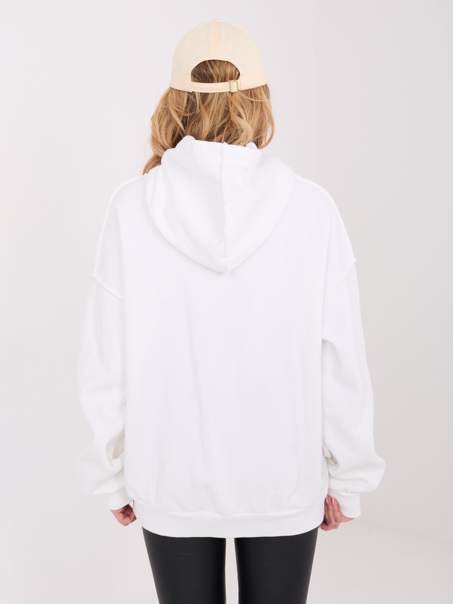 Oversize džemperis su gobtuvu “VELYN” pieno balta