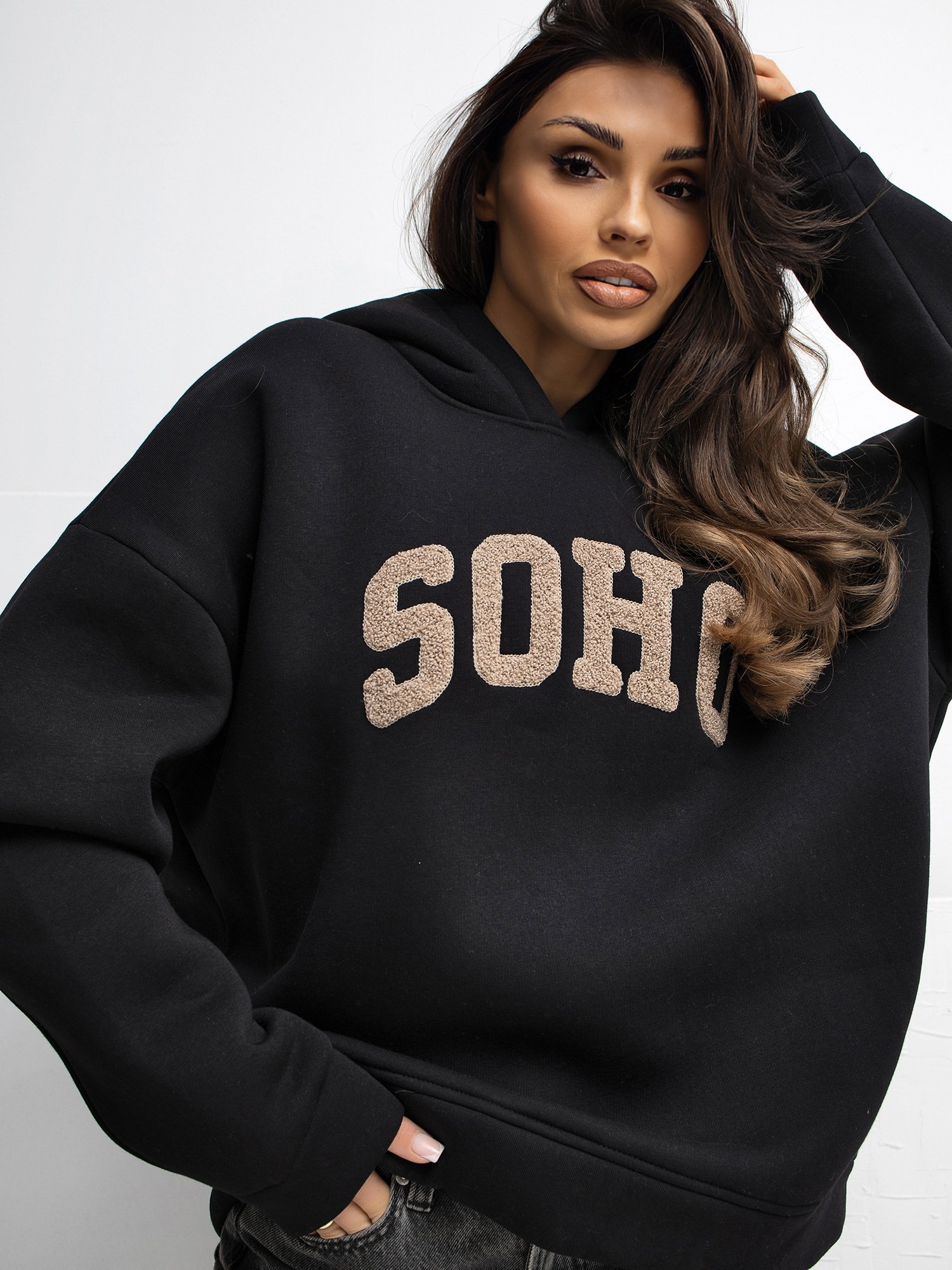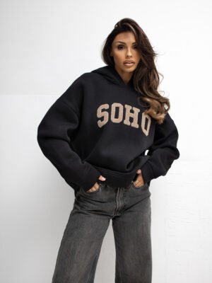 Oversize džemperis su užrašu ir gobtuvu “MOSSE” juoda