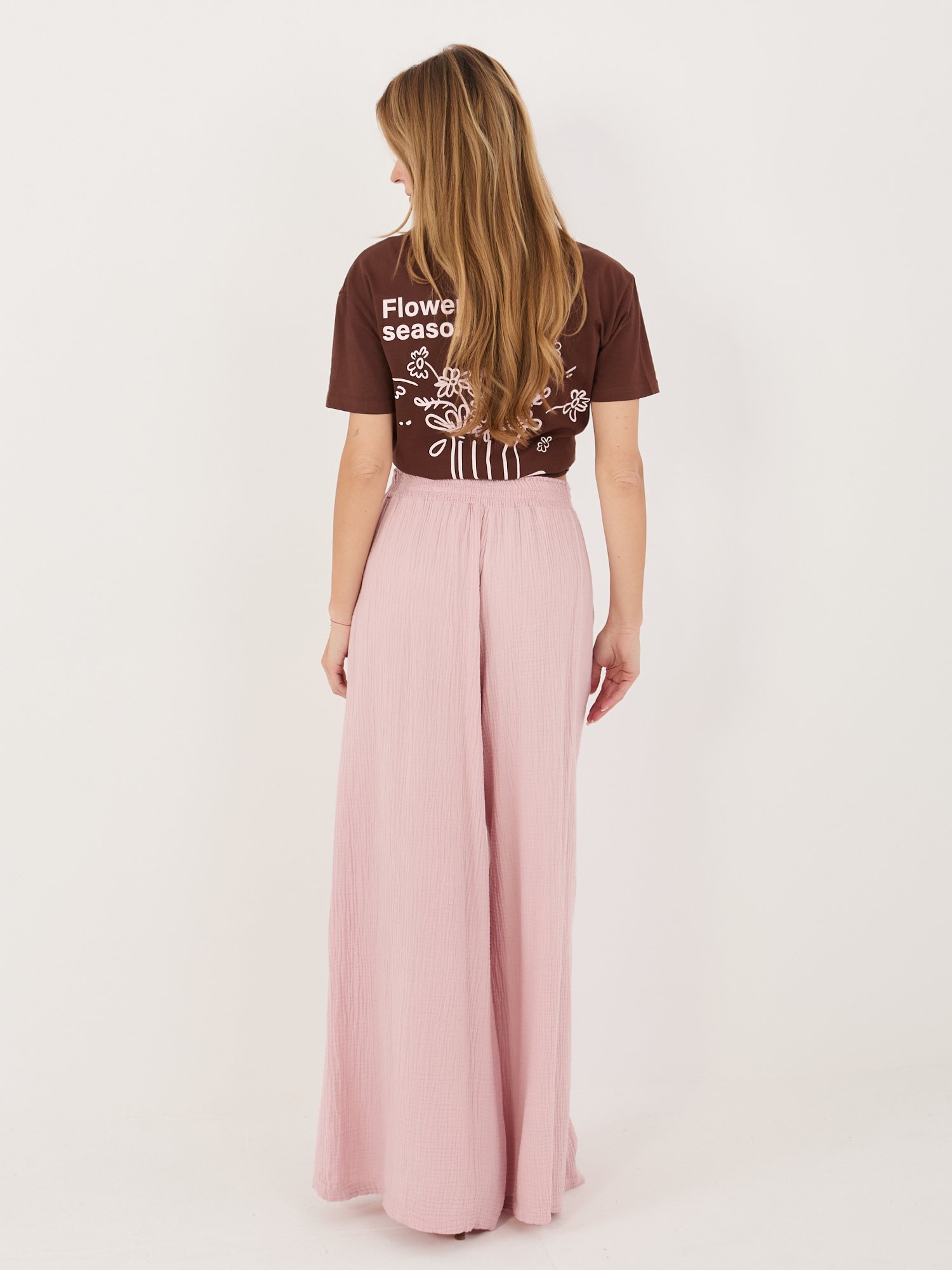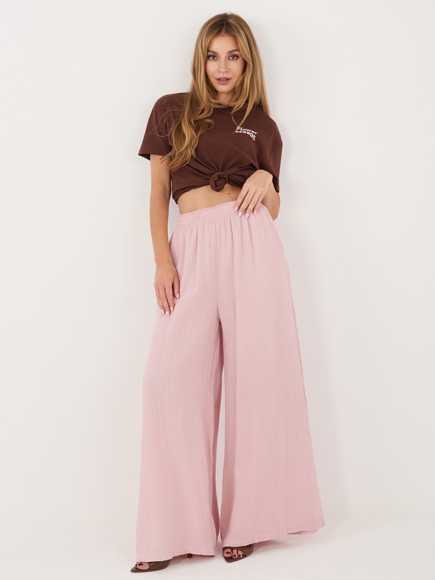 Palazzo stiliaus muslino kelnės “HUGGY” šviesi rožinė