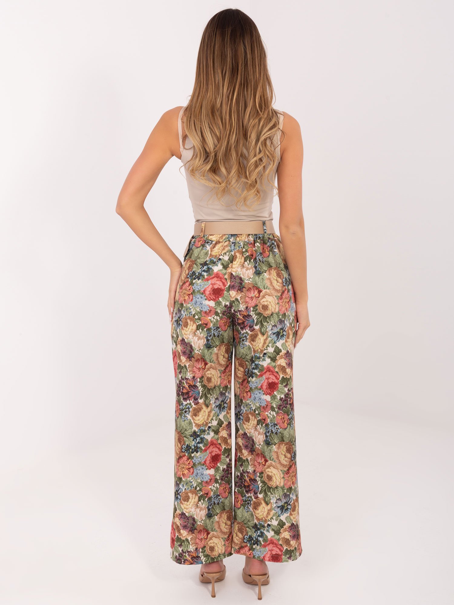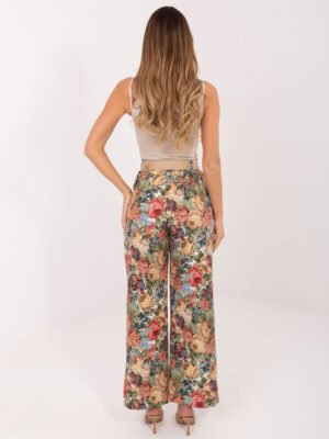 Plačios gėlių rašto kelnės aukštu liemeniu “RINNA” žalia