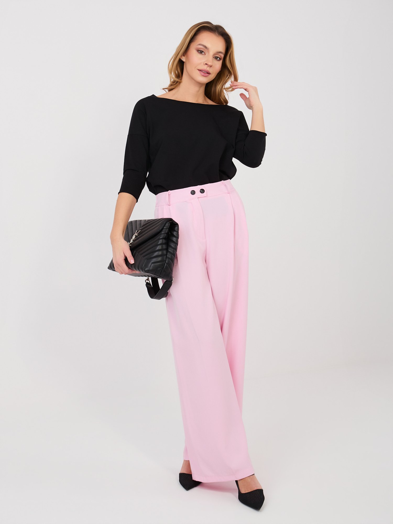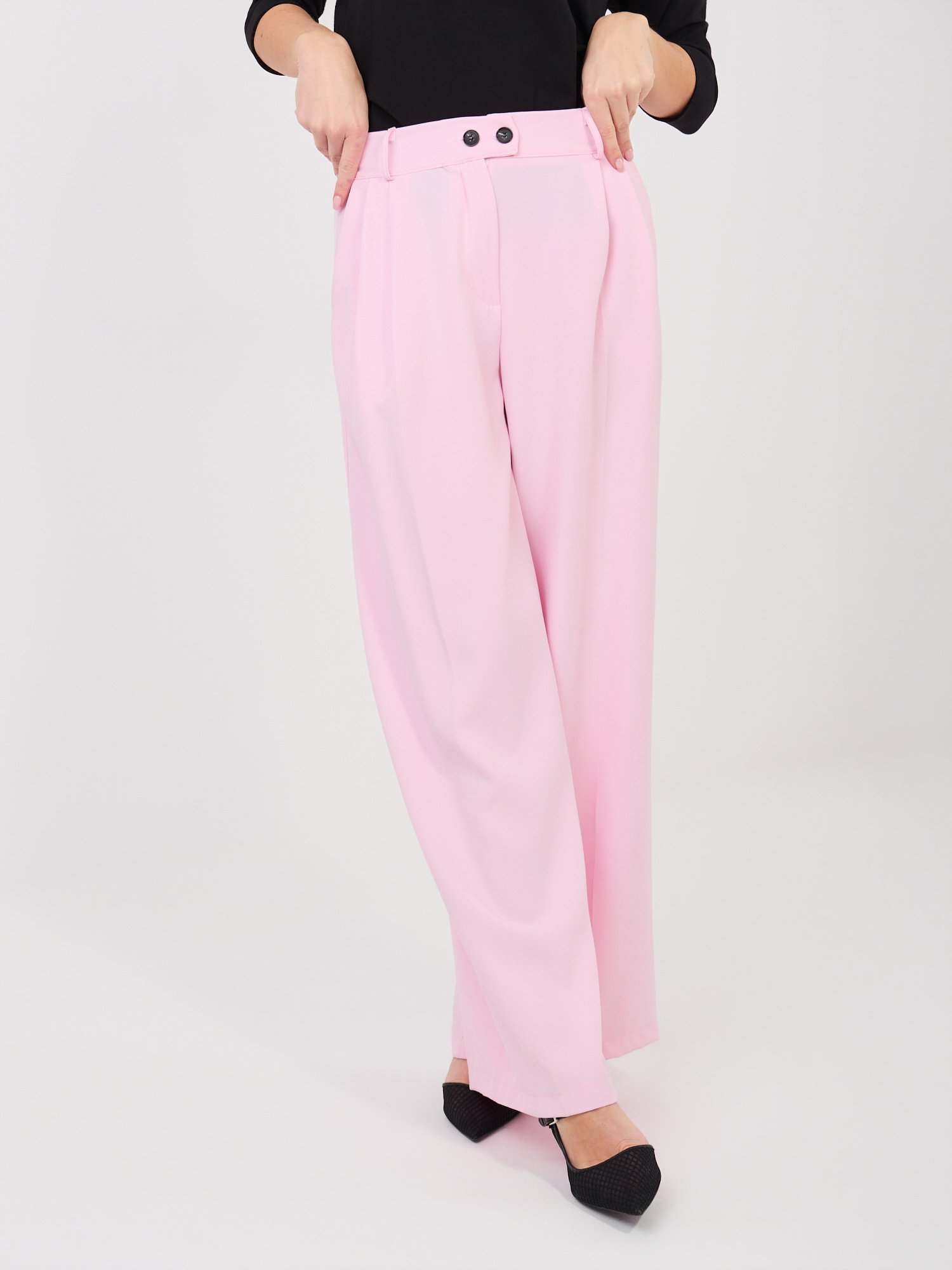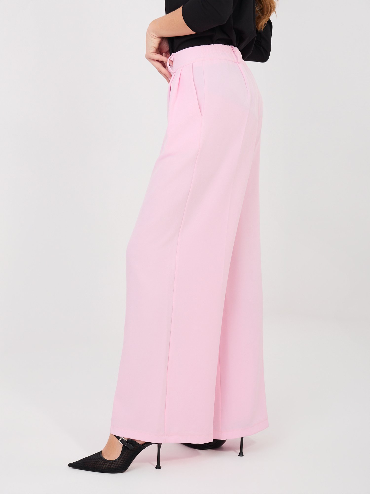 Plačios kelnės su aukštu liemeniu “VILOU” šviesi rožinė