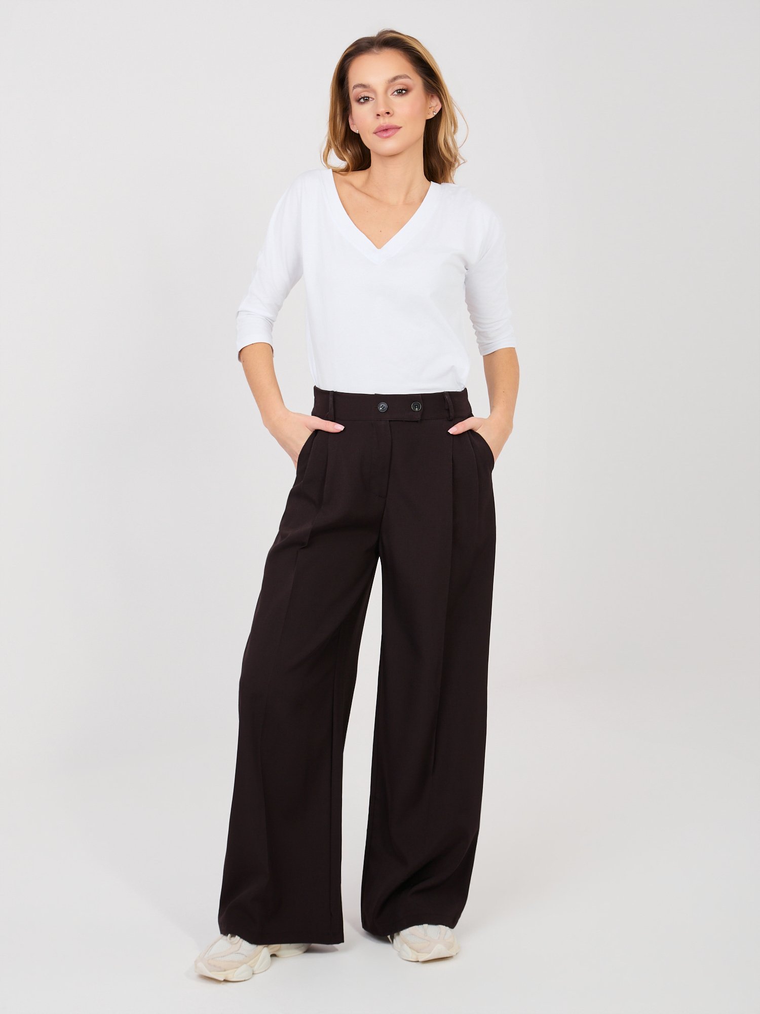 Modelis dėvi VIENO DYDŽIO (one size) laisvalaikio kelnes.