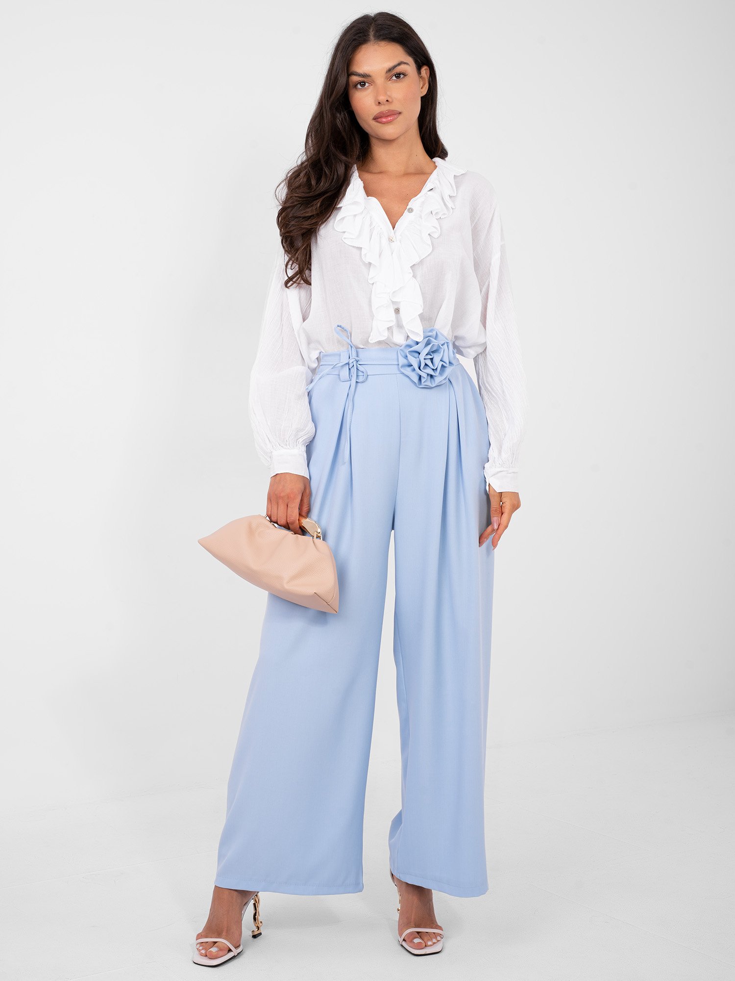 Plačios kelnės su išskirtiniu juosmens akcentu “SUNNY” šviesi mėlyna