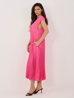 Plisuota midi suknelė trumpomis rankovėmis “AUSTINN” tamsi rožinė