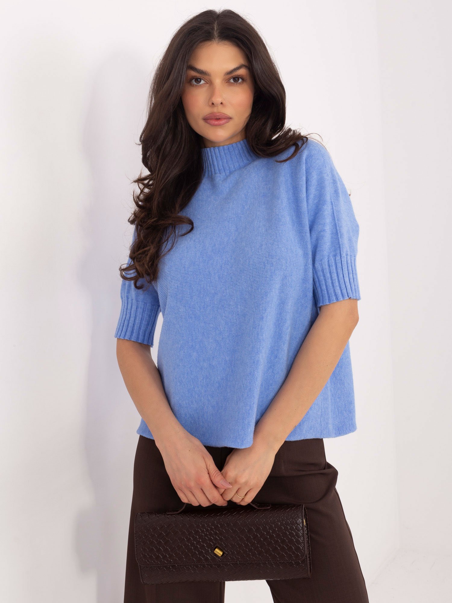 Šis megztinis su vilna  yra puikus pasirinkimas toms, kurios nori lengvo, plono, bet šilto drabužio. Aukšta apykaklė suteikia tvarkingą, modernų įvaizdį, o trumpos rankovės daro modelį universaliu — patogiai dėvėsis tiek vienas, tiek po švarku ar liemene.