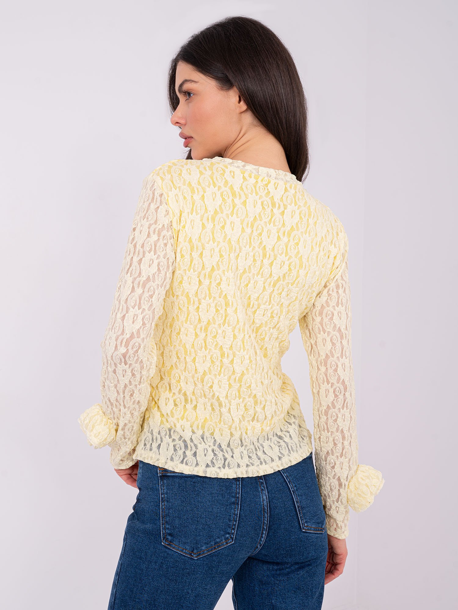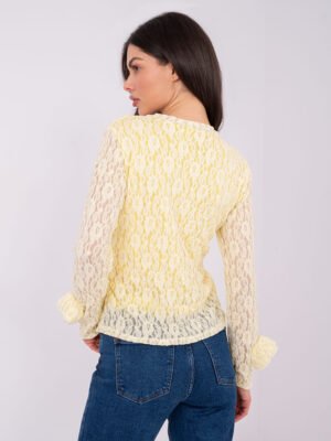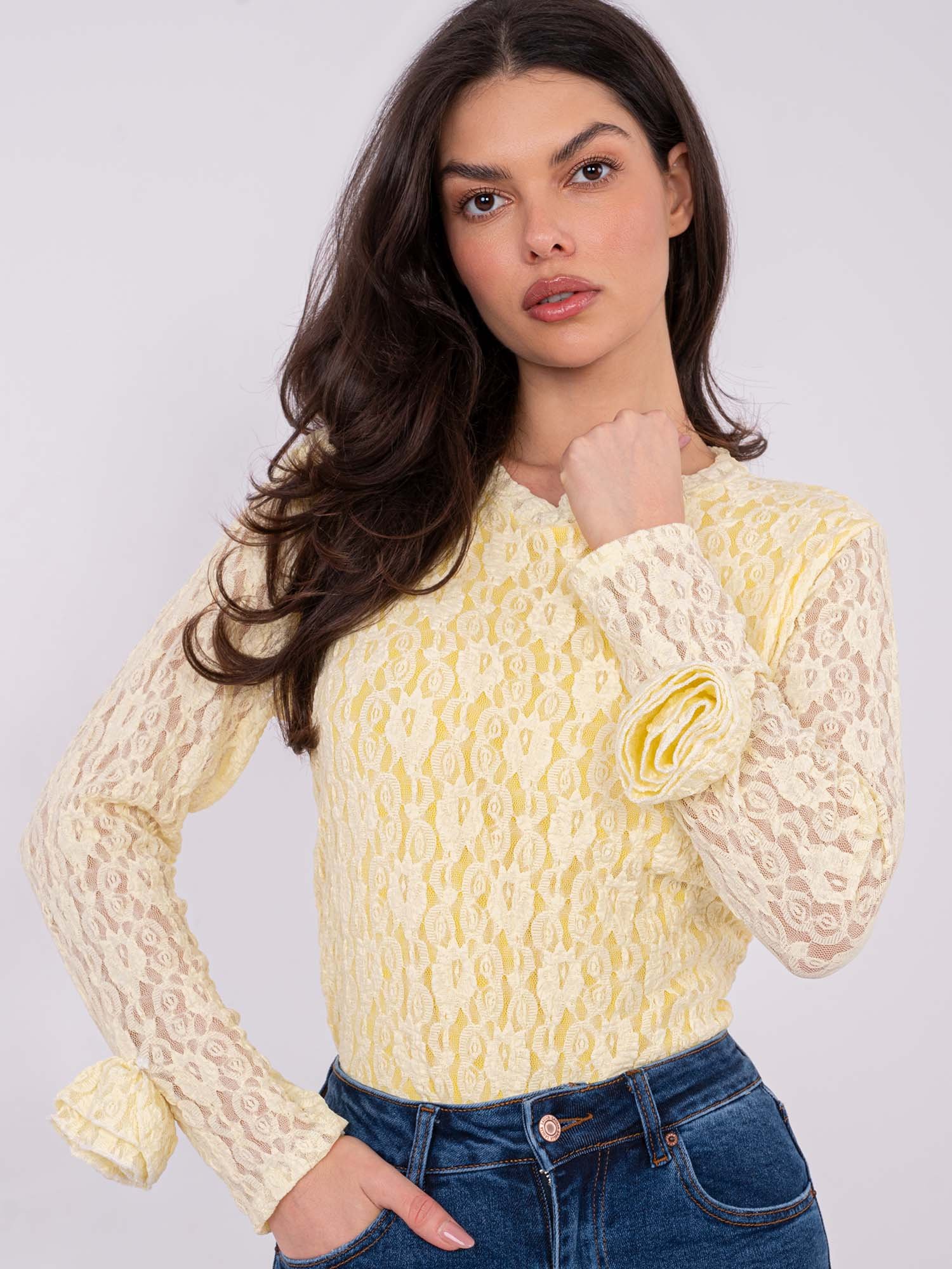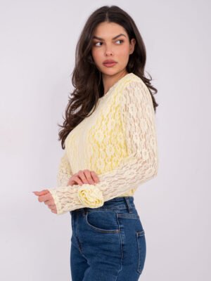 Puošni nėrinių palaidinė su dekoratyviomis gėlėmis ant rankogalių “ANDREA” šviesi geltona