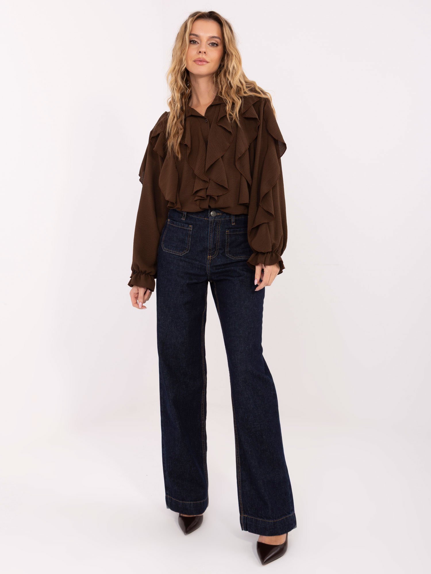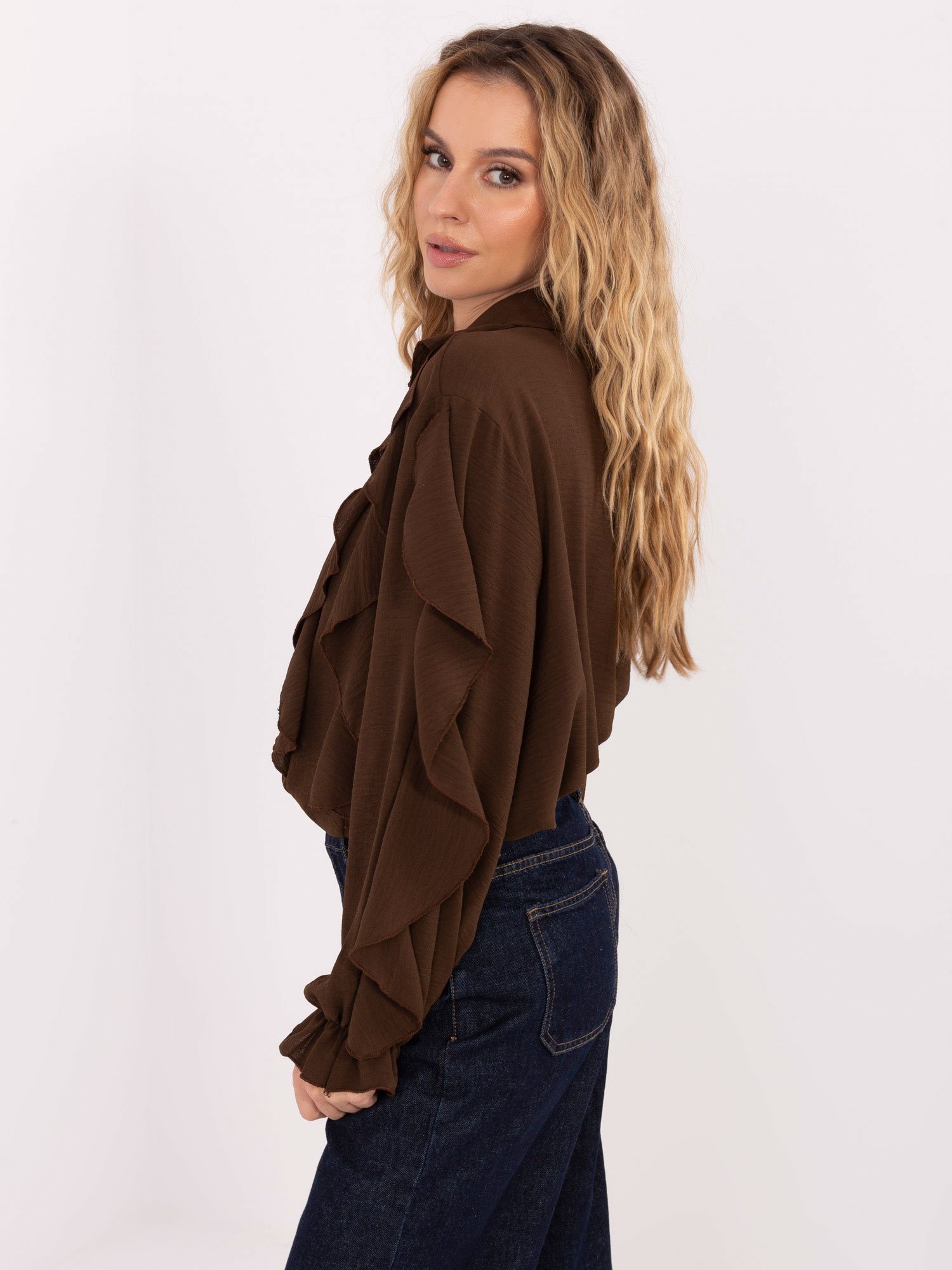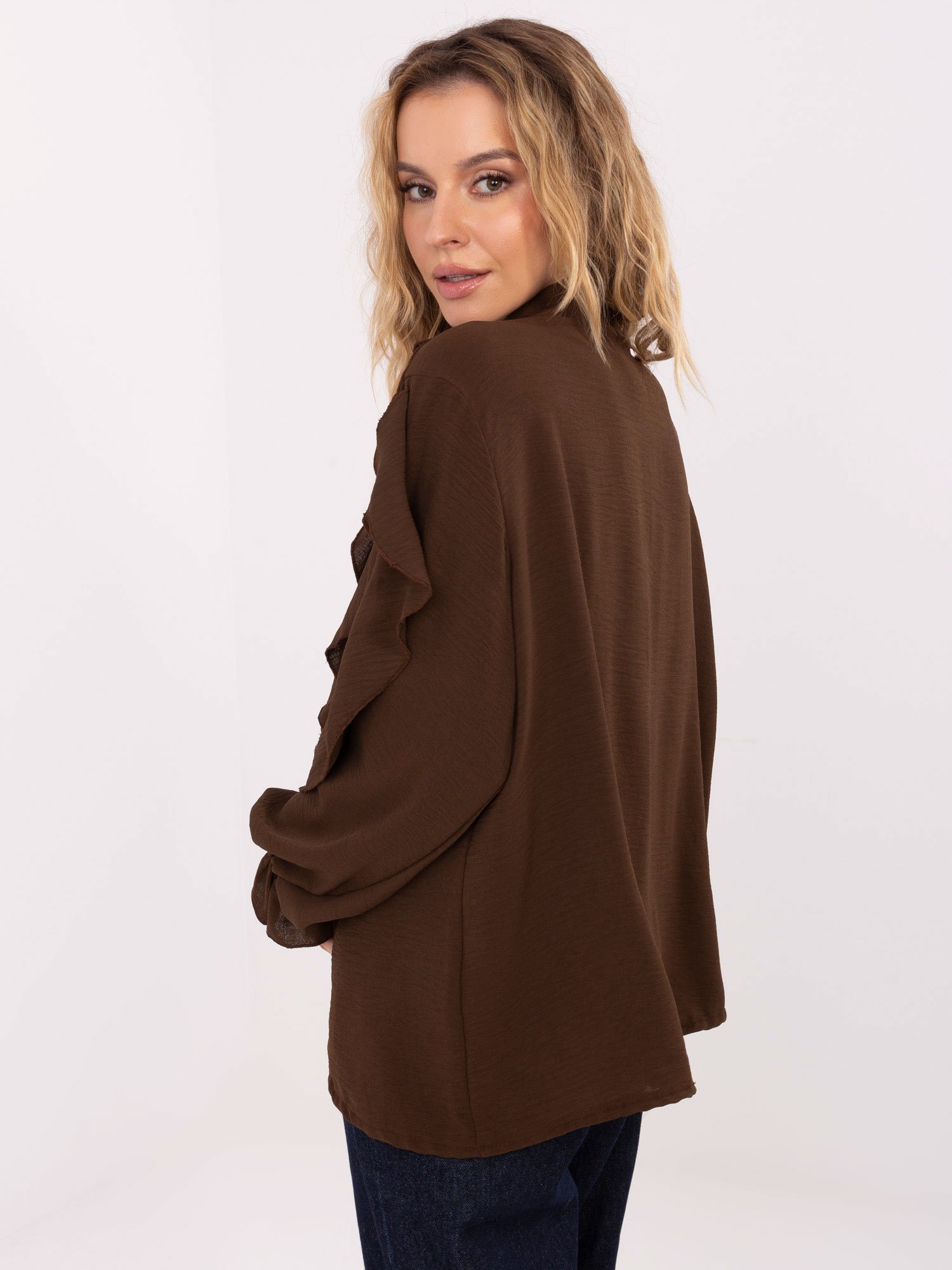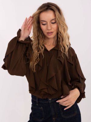 Puošnūs klasikinio modelio, laisvo silueto (oversize stiliaus) marškiniai. Puikus pasirinkimas tiek darbui, tiek ypatingai progai – dera prie klasikinių kelnių, sijono ar leginsų. Puikiai tinka įvairia figūrai.