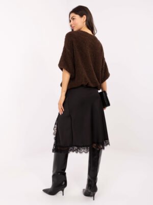 Elegantiškas moteriškas sijonas su subtiliomis nėrinių detalėmis, suteikiančiomis išskirtinio moteriškumo ir rafinuotumo. Lengvai krentantis atlasinis audinys gražiai priglunda prie kūno ir sukuria lengvumo bei grakštumo įspūdį. Sijonas pasižymi midi ilgiu ir aukštu liemeniu, kuris pabrėžia figūrą bei suteikia vizualaus ilgio kojoms. Nėriniuota apačia ir skeltukas šone subtiliai atidengia koją, suteikdami įvaizdžiui lengvo žavesio bei elegancijos.