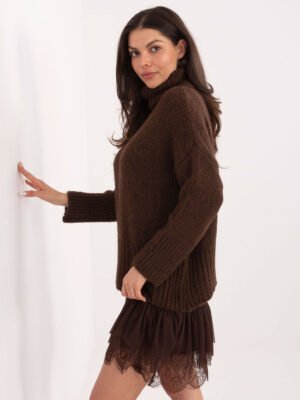 Modelis dėvi VIENO DYDŽIO (one size) megztinį.
