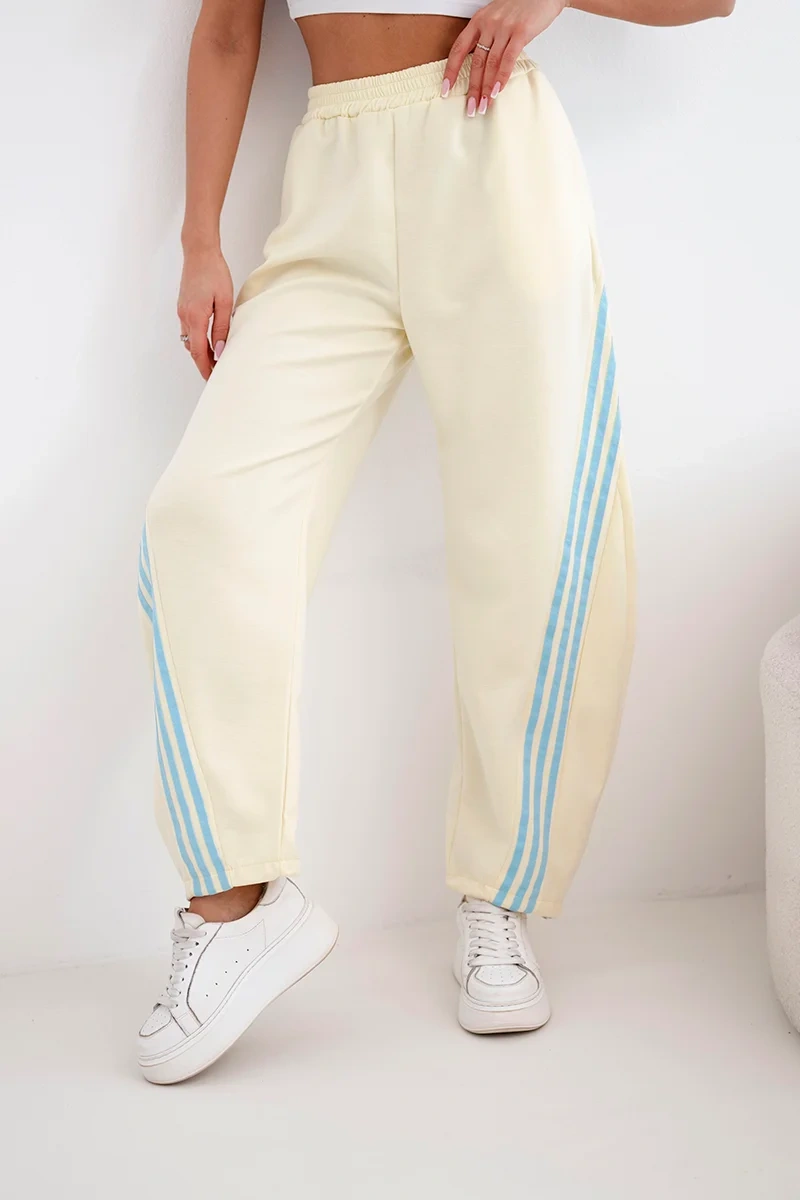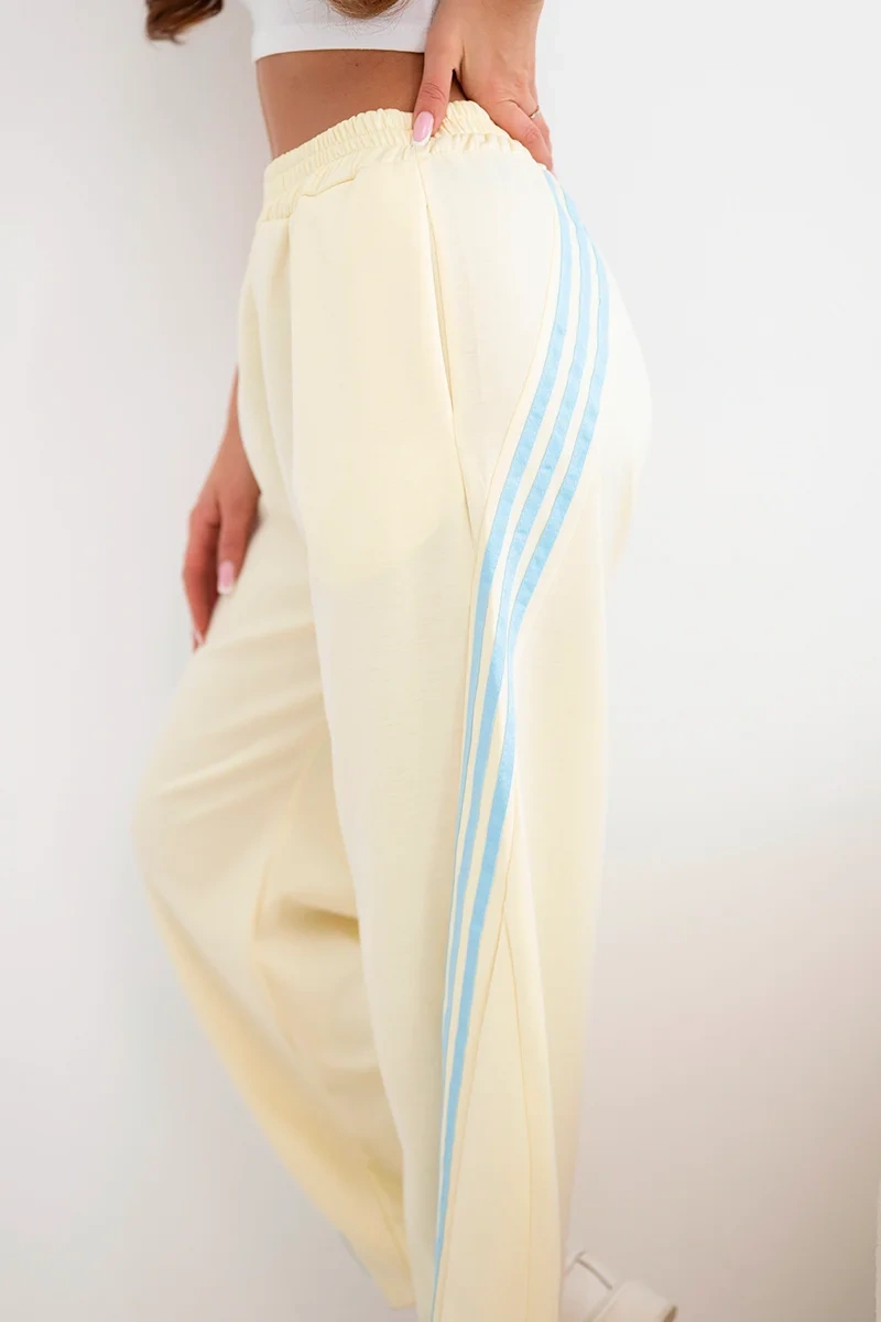 Sportinio stiliaus kelnės su juostomis “NUNA” šviesi geltona