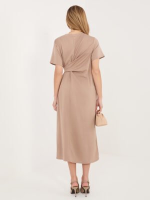 Stilinga asimetriškai drapiruota suknelė su dekoratyviniu surišimu “VAILLY” tamsi smėlio