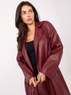 Stilingas odos imitacijos pusilgis paltas IT-PL-A8393.81 bordo