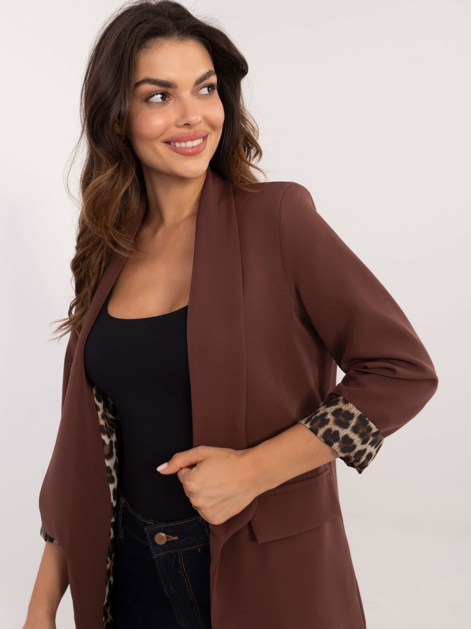 Stilingas švarkas su leopardiniu pamušalu ir atlenkiamomis 3/4 rankovėmis “AURA” šokoladinė