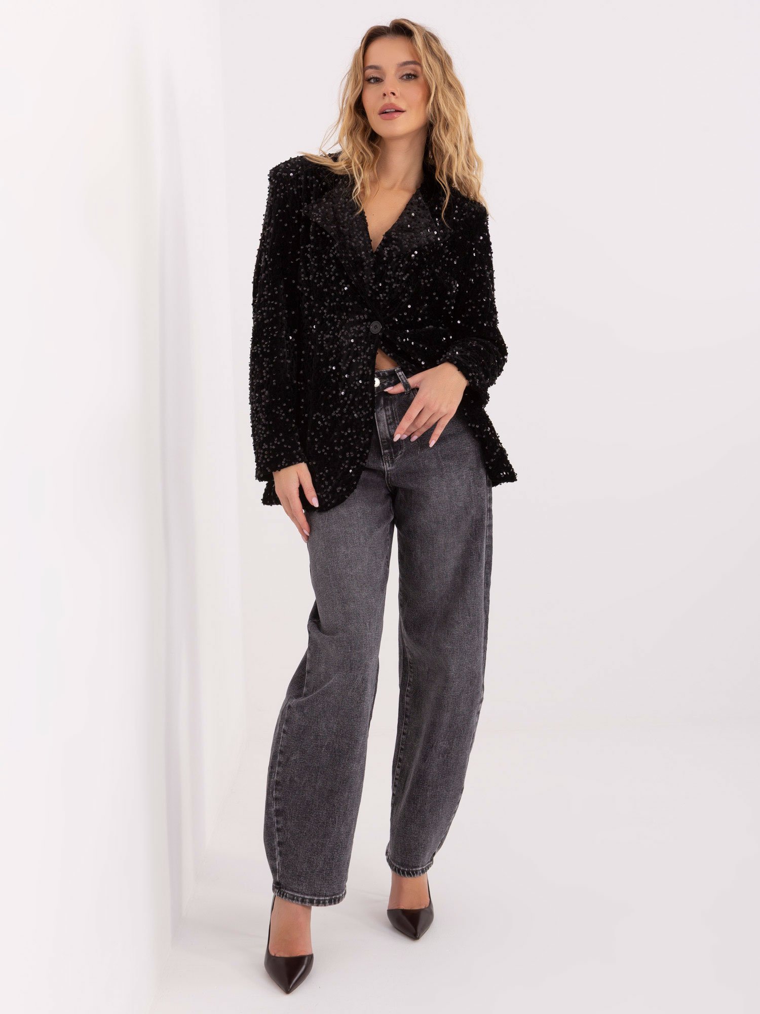 Išskirtinio dizaino moteriškas švarkas, puoštas blizgančiais žvyneliais – tobulas pasirinkimas vakarėliui ar ypatingai progai. Klasikinis siluetas derinamas su žėrinčiu audiniu, todėl šis švarkas suteikia prabangos ir išskirtinumo bet kuriam įvaizdžiui. Modelis su atviru V formos iškirpimu ir užsegimu vienu mygtuku subtiliai pabrėžia liemenį, o laisvas kritimas užtikrina komfortą ir elegantišką siluetą. Minkštas pamušalas suteikia papildomo patogumo ir leidžia švarkui išlaikyti formą. Puikiai tinka tiek prie klasikinių kelnių, tiek prie sijono ar odos imitacijos kelnių.