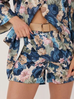 Stilingi gėlių rašto klostuoti šortai-sijonas “CELLI” tamsi mėlyna