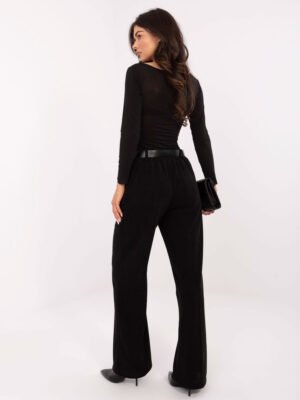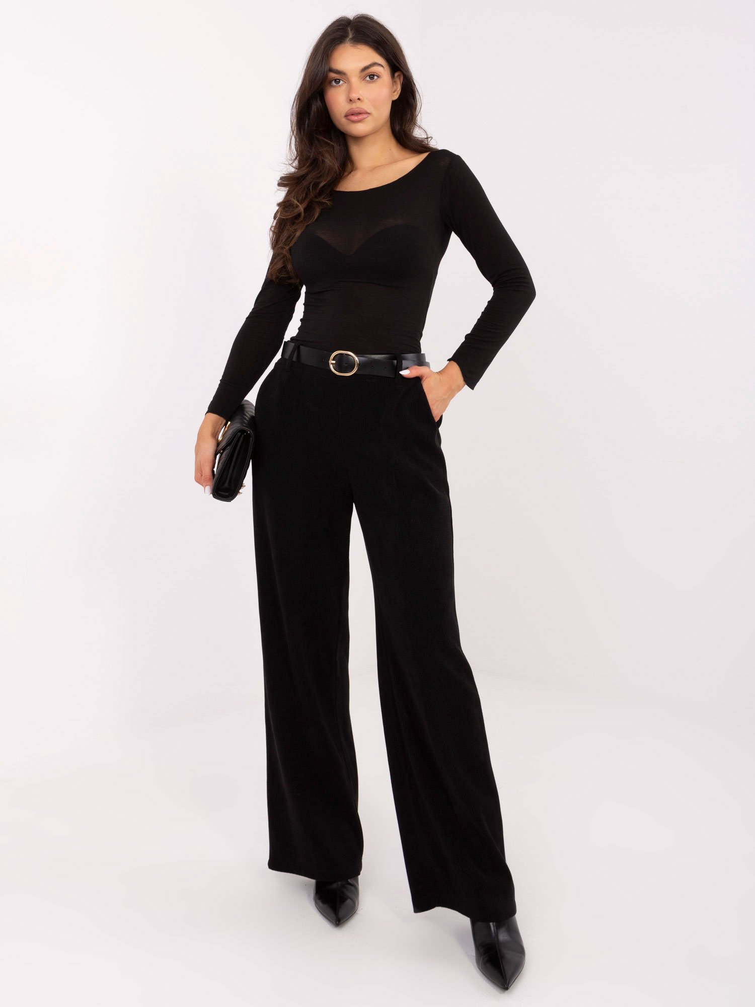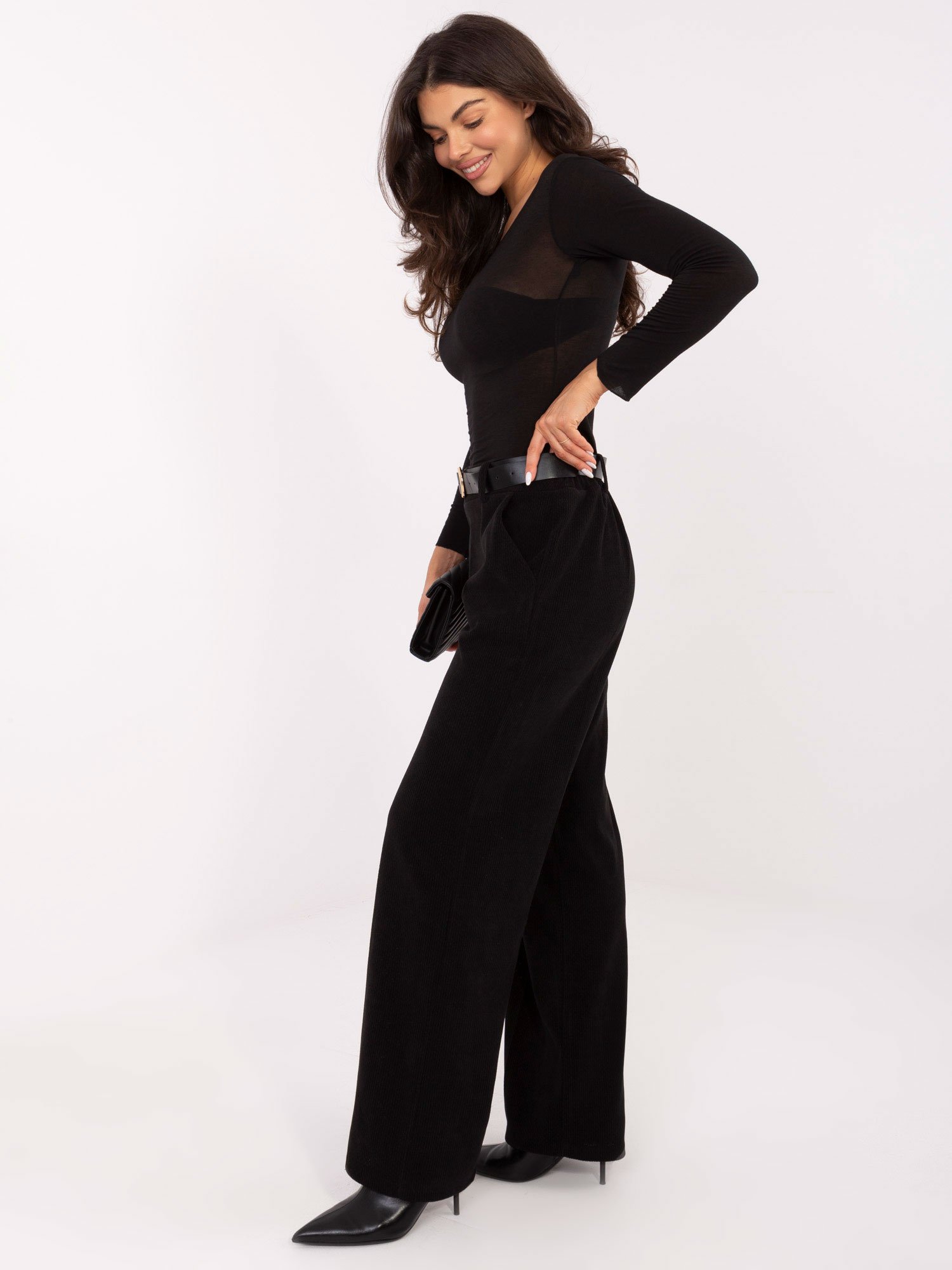 Stilingos velvetinės platėjančios kelnės su aukštu liemeniu “ELLI” juoda