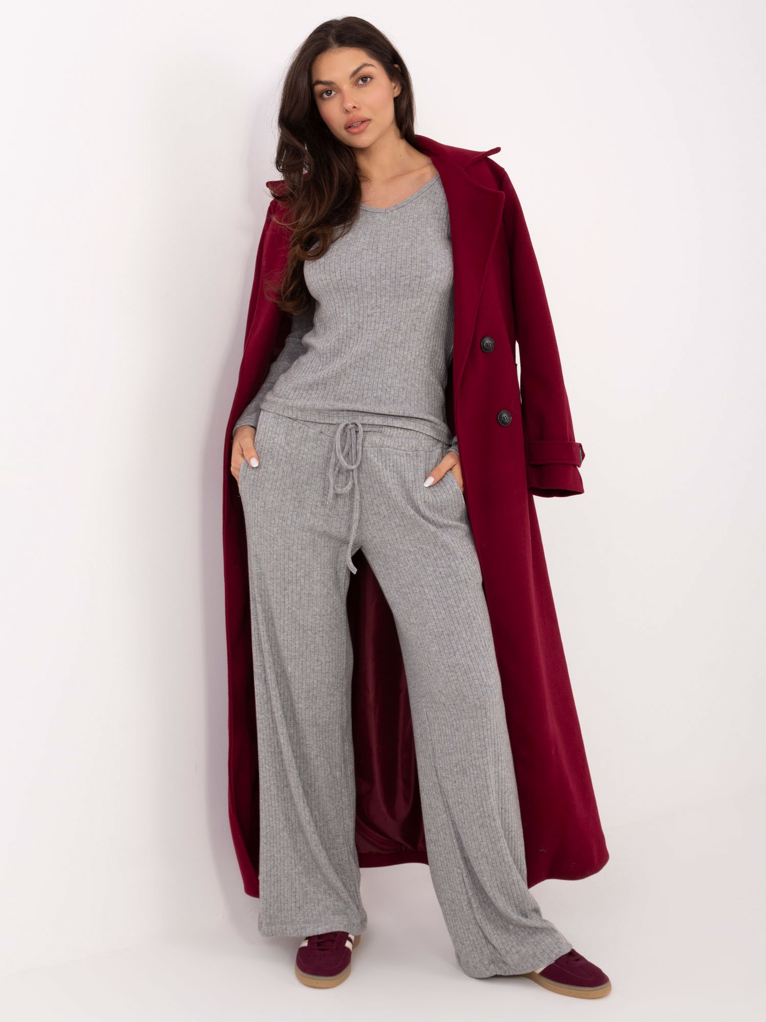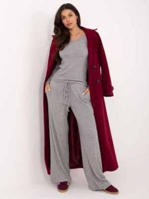 Šios stulpeliu megztos  kelnės pasižymi tiesiu, laisvai krintančiu siluetu, kuris nevaržo judesių ir suteikia išskirtinį patogumą kasdienai. Elastingas juosmuo su reguliuojamu raišteliu leidžia lengvai priderinti kelnių prigludimą. Dėl universalaus dizaino šis modelis puikiai dera prie megztinių, džemperių ar laisvalaikio viršų, todėl tinka tiek namams, tiek išėjimams. Kelnės yra dalis megzto komplekto, todėl puikiai dera su to paties mezgimo megztiniu.