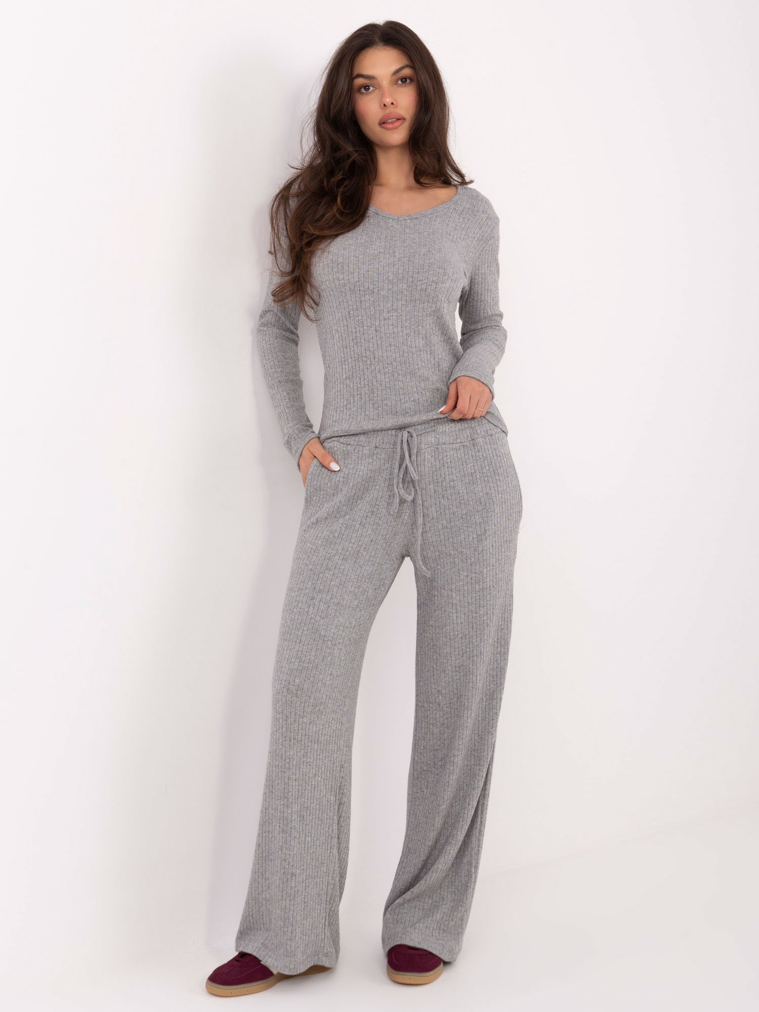 Stulpeliu megztos laisvai krintančios kelnės “JENNY” pilka
