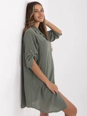 Suknelės išmatavimai vienu dydžiu išmatuoti plokščiai: pažastų plotis – 62 cm, juosmens plotis – 57 cm, rankovių ilgis – 42 cm, klubų plotis – 58 cm, bendras ilgis – 97 cm.