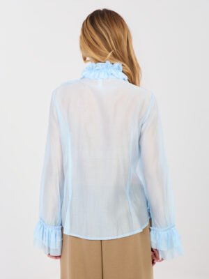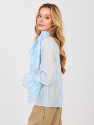 Švelniai permatomi marškiniai su raukiniais ir kaspinu “DIANA” šviesi mėlyna