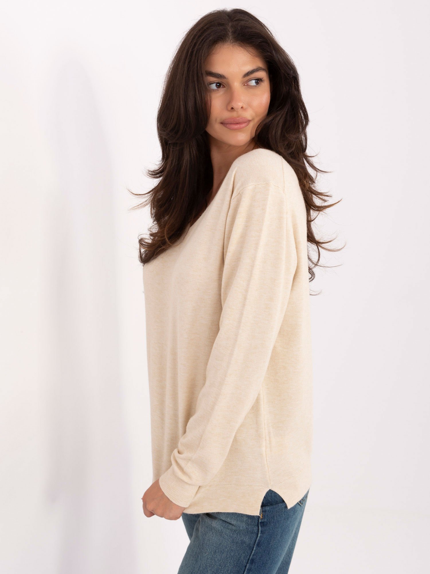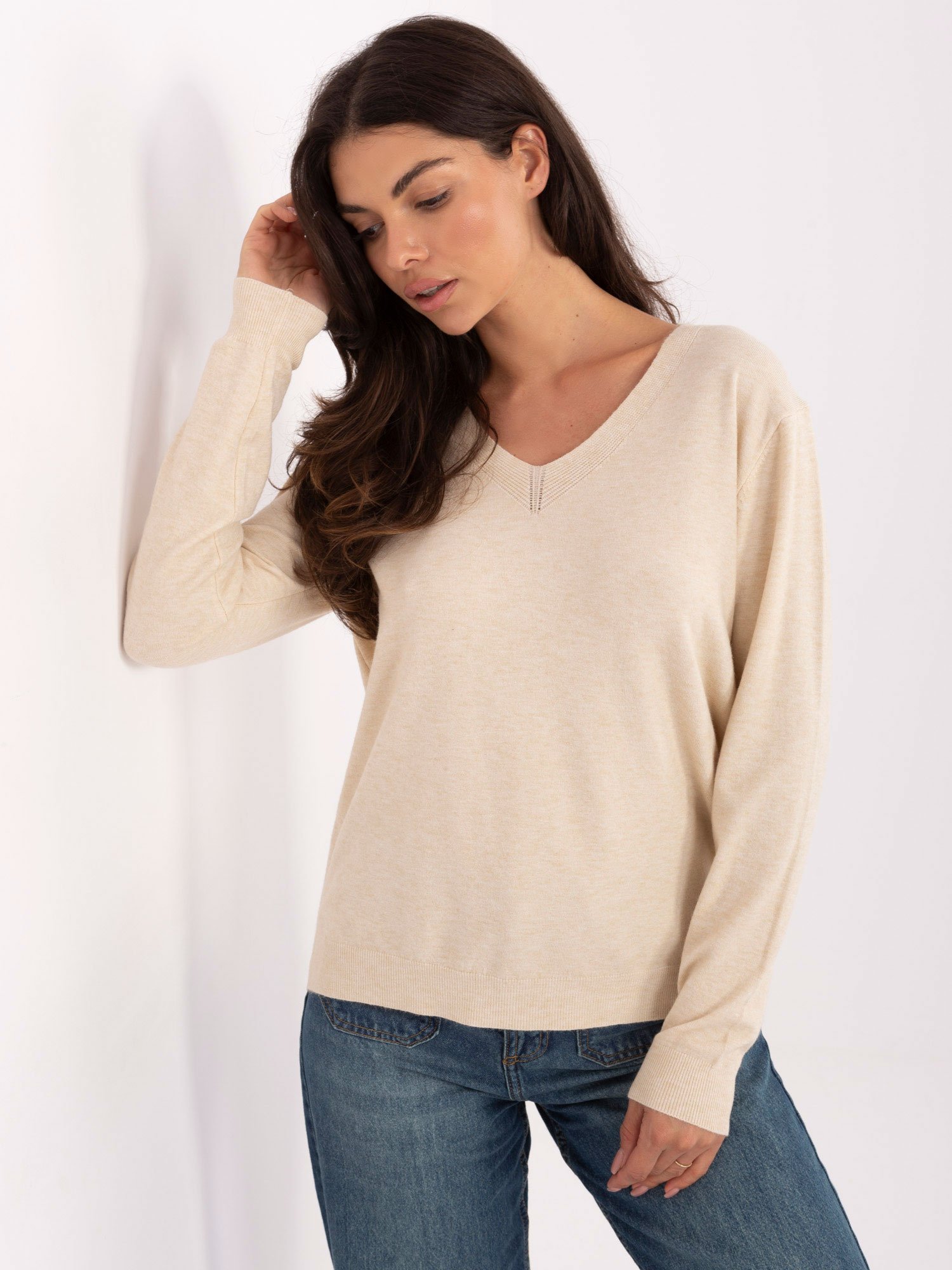 Tampraus ir švelnaus audinio megztinis su modaliu PM-SW-SY5511.78 šviesi beige