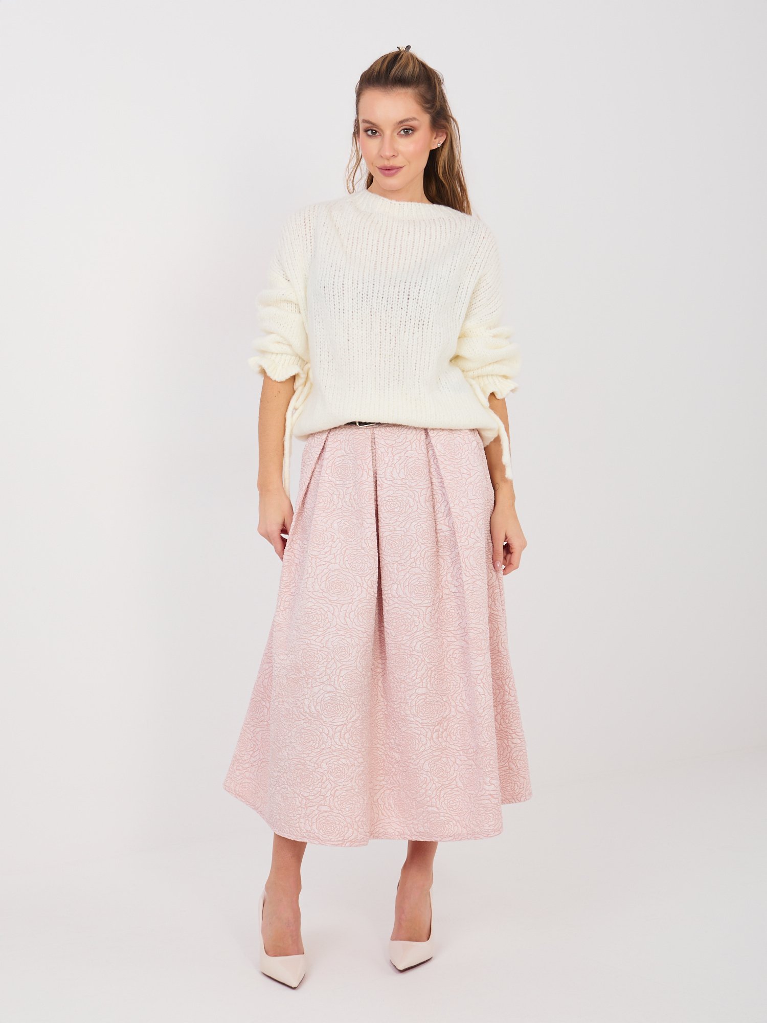Modelis dėvi ONE SIZE dydžio sijoną.