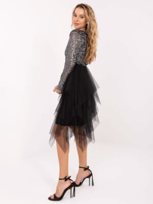 Modelis dėvi VIENO DYDŽIO suknelę.