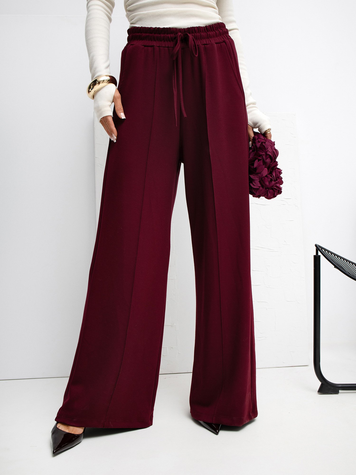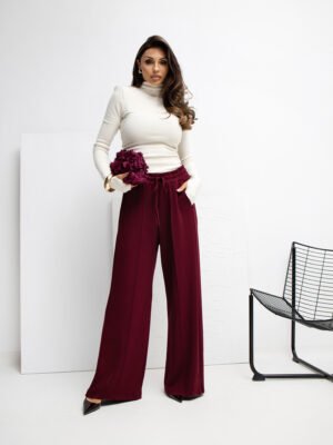 Trikotažinės Palazzo stiliaus kelnės su kišenėmis “MILEY” bordo