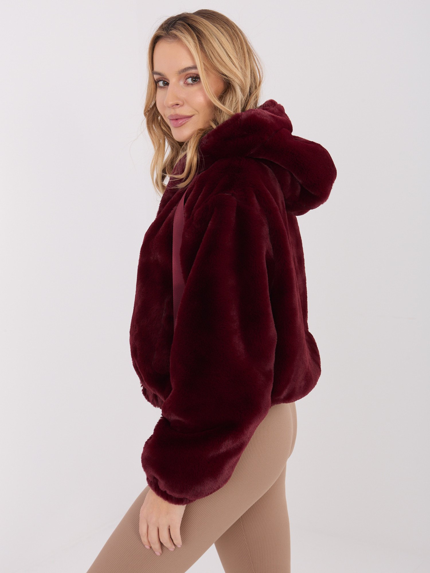 Trumpa dirbtinio kailiuko striukė “NIKOLE” bordo