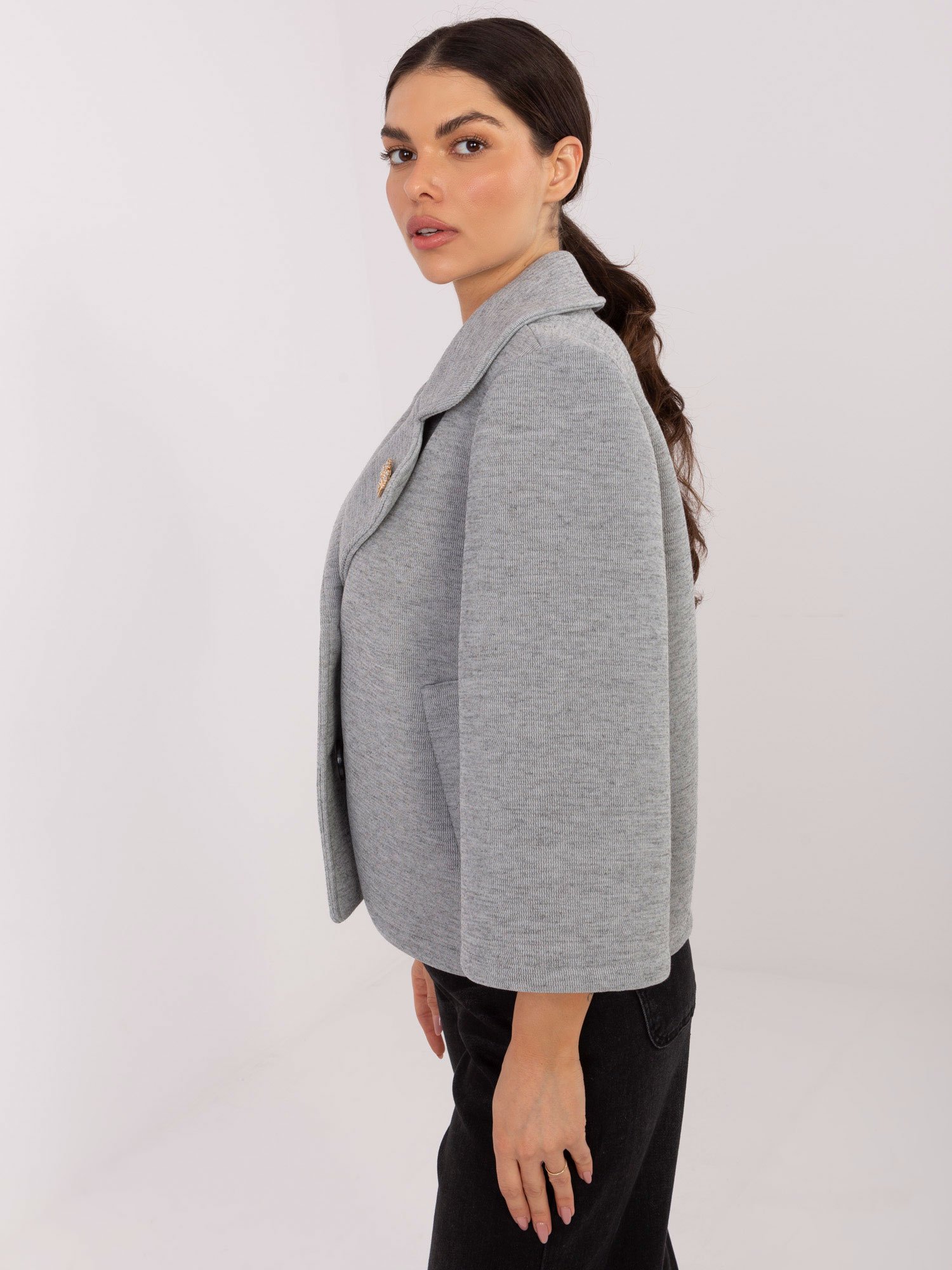 Trumpas standaus neperpučiamo audinio paltas “PETA” pilka