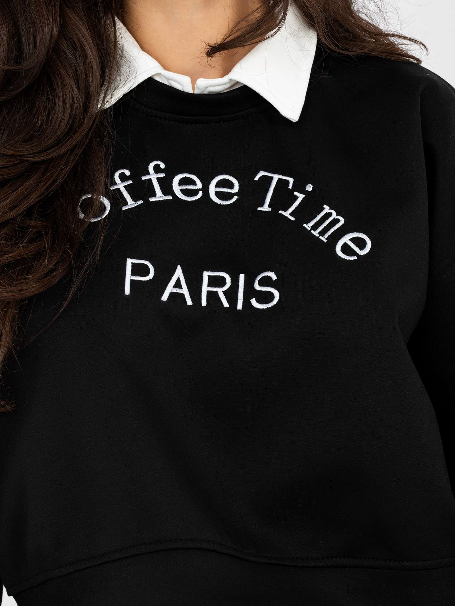 Dviejų dalių komplektas, kurį sudaro trumpintas džemperis su marškinių tipo apykakle ir subtiliu užrašu priekyje bei patogios kelnės su reguliuojamu juosmeniu. Subtilus dizainas ir švarios linijos leidžia lengvai pritaikyti tiek kasdieniams, tiek miesto deriniams.
