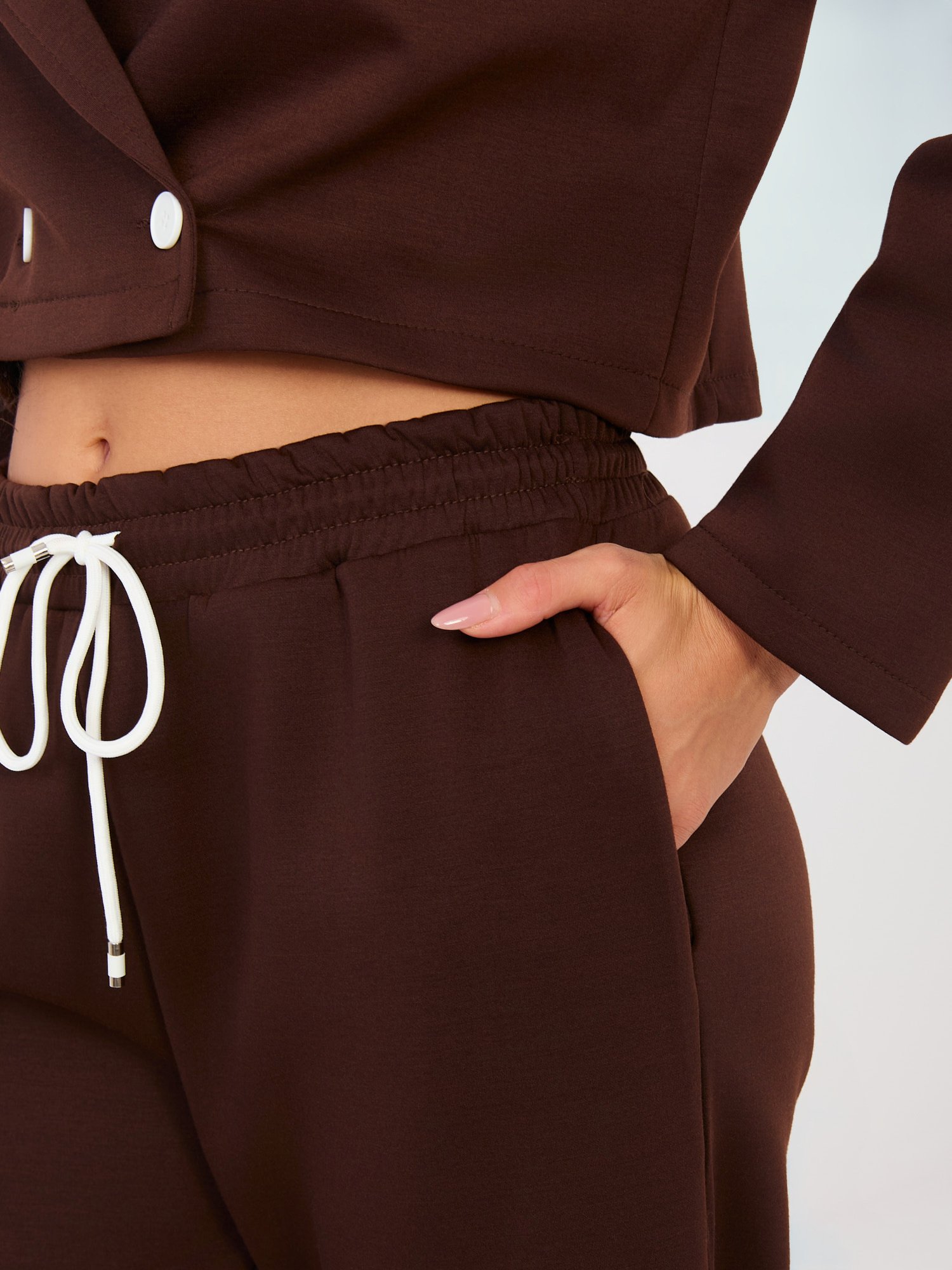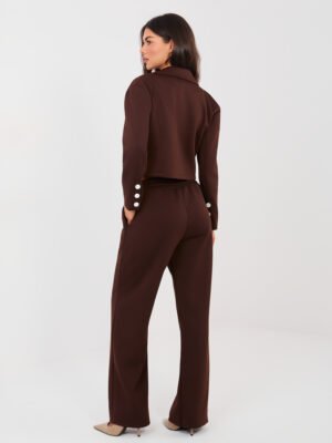 Trumpo švarkelio ir kelnių komplektas iš sviestinės medžiagos “EVON” ruda