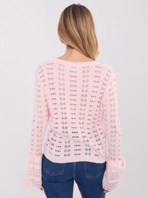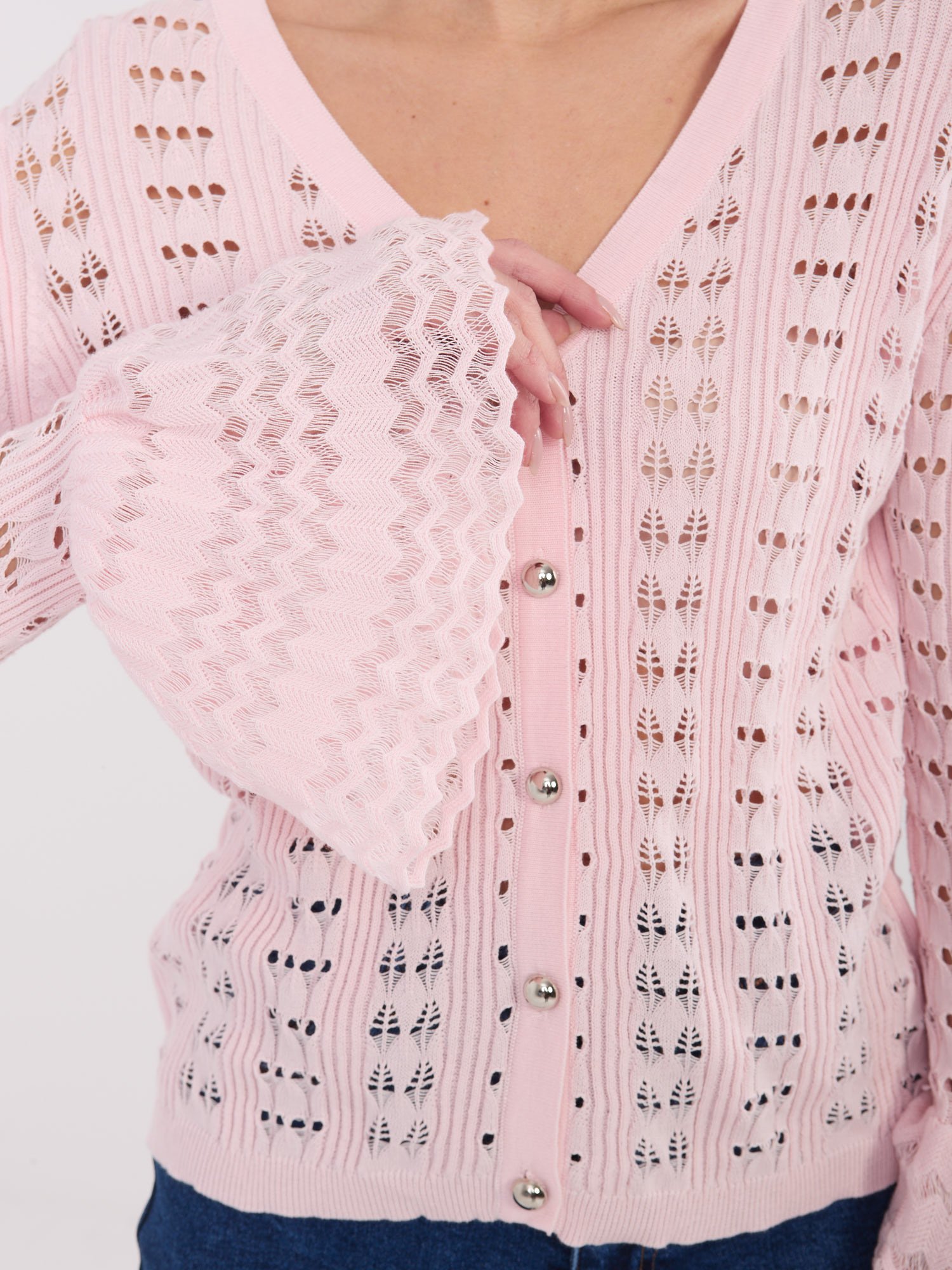 Užsegamas nėrinių megztukas su varpelio formos rankogaliais “NELLY” šviesi rožinė