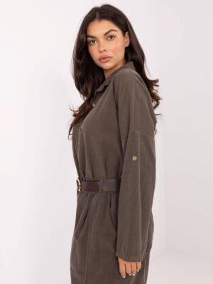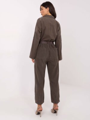 Velveto kelnės su klostėmis ir diržu “BONNI” tamsi khaki