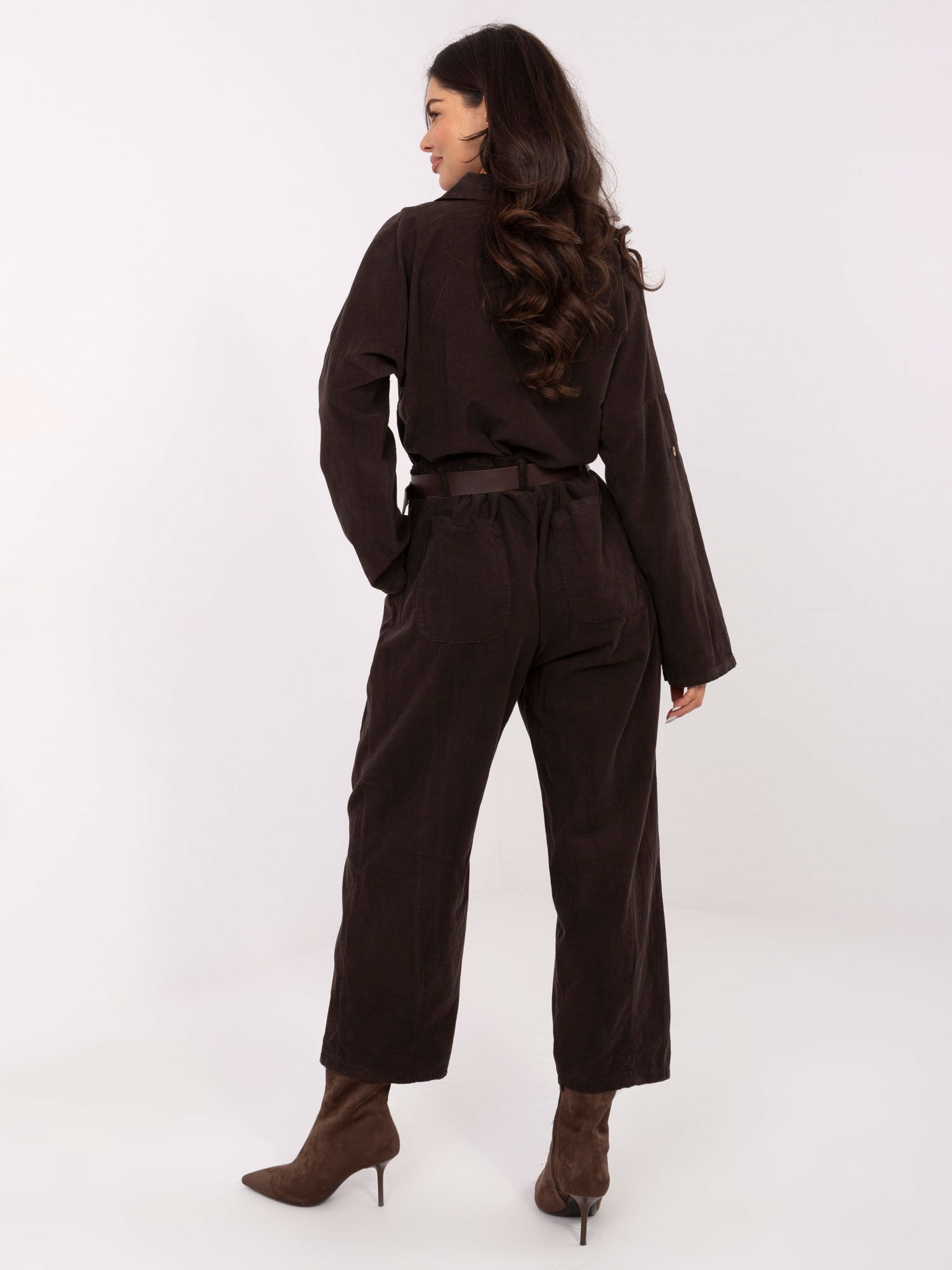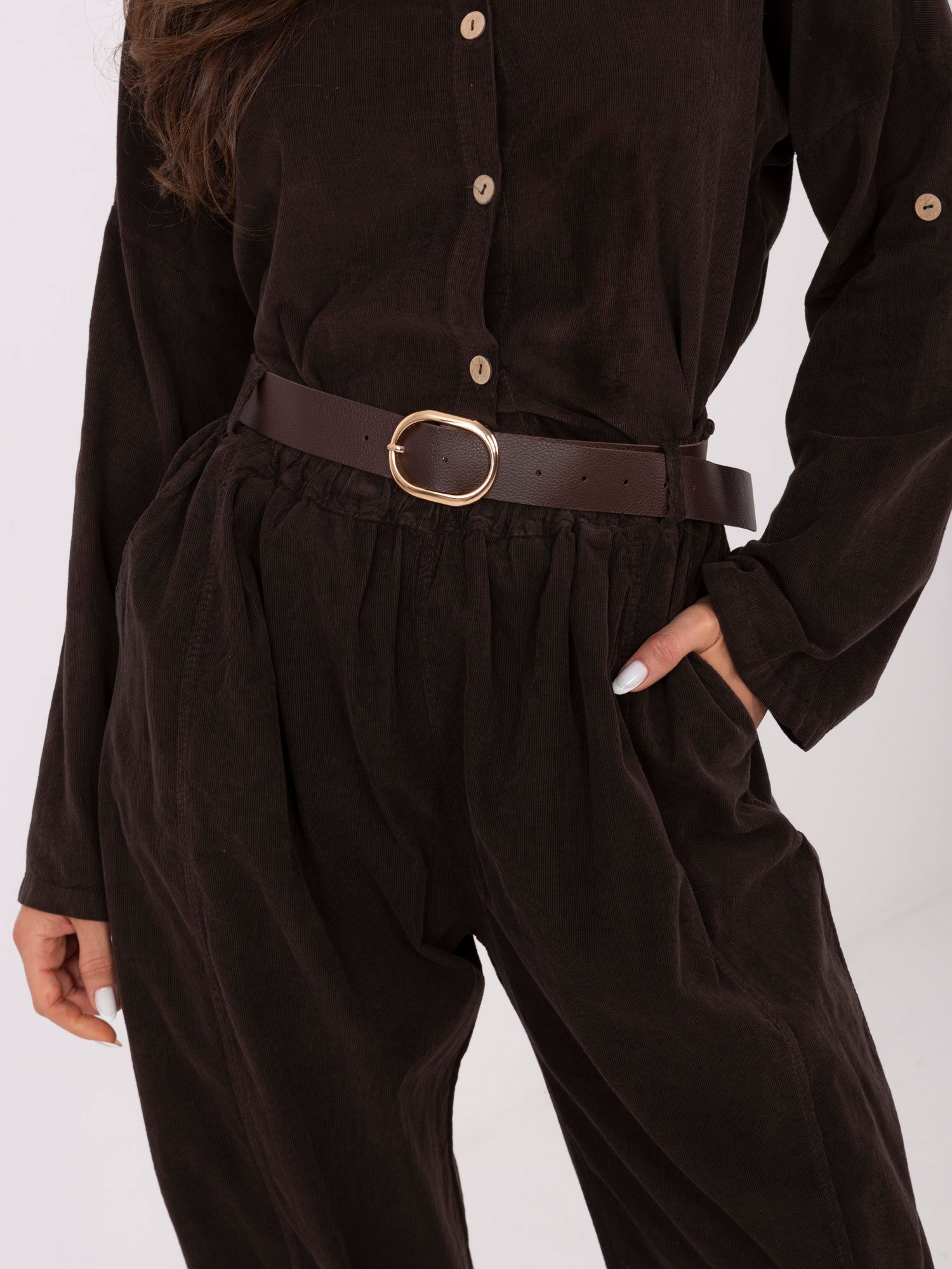 Velveto kelnės su klostėmis ir diržu “BONNI” tamsi ruda